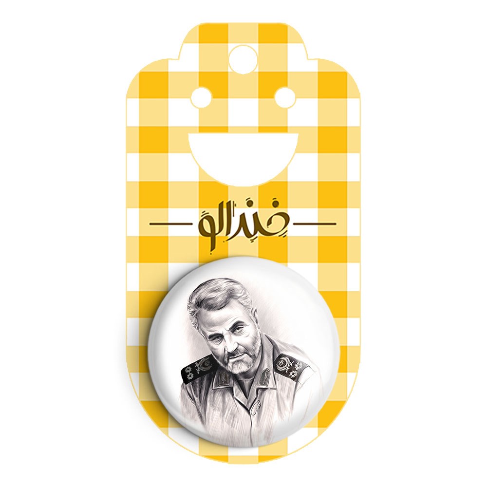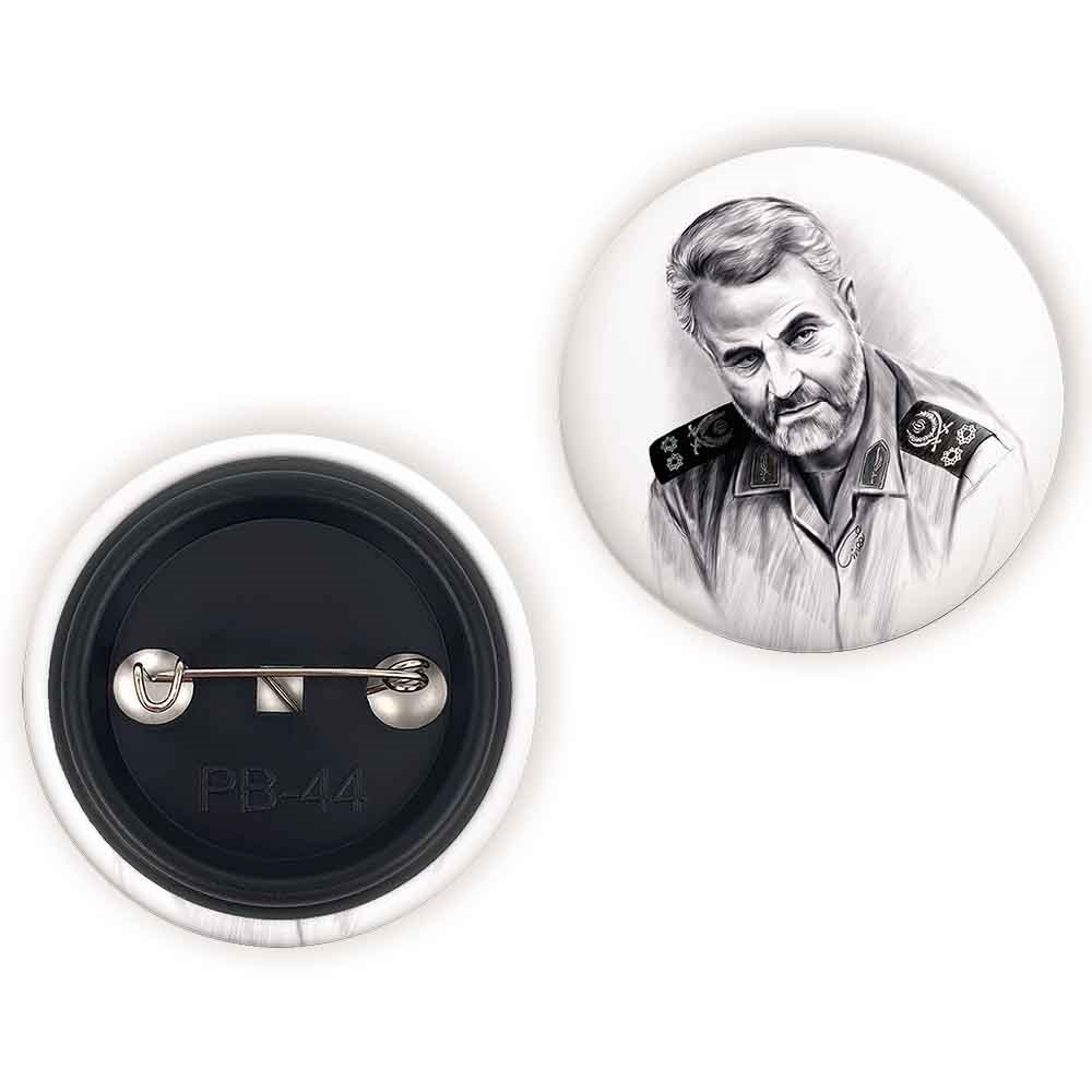 پیکسل 44 میلی متری سردار قاسم سلیمانی خندالو با روکش سلفون حرارتی مات مخملی ضدخش و قطعه پشتی رنگی تولید شده است.پلاستیکی پشت پیکسل با سوزن یک تکه ثابت و بدون لغزش و جا به جایی، ایستایی بسیار بهتری نسبت به پشتی فلزی پیکسل دارند که این مهم در تولید این محصول نیز رعایت شده است.