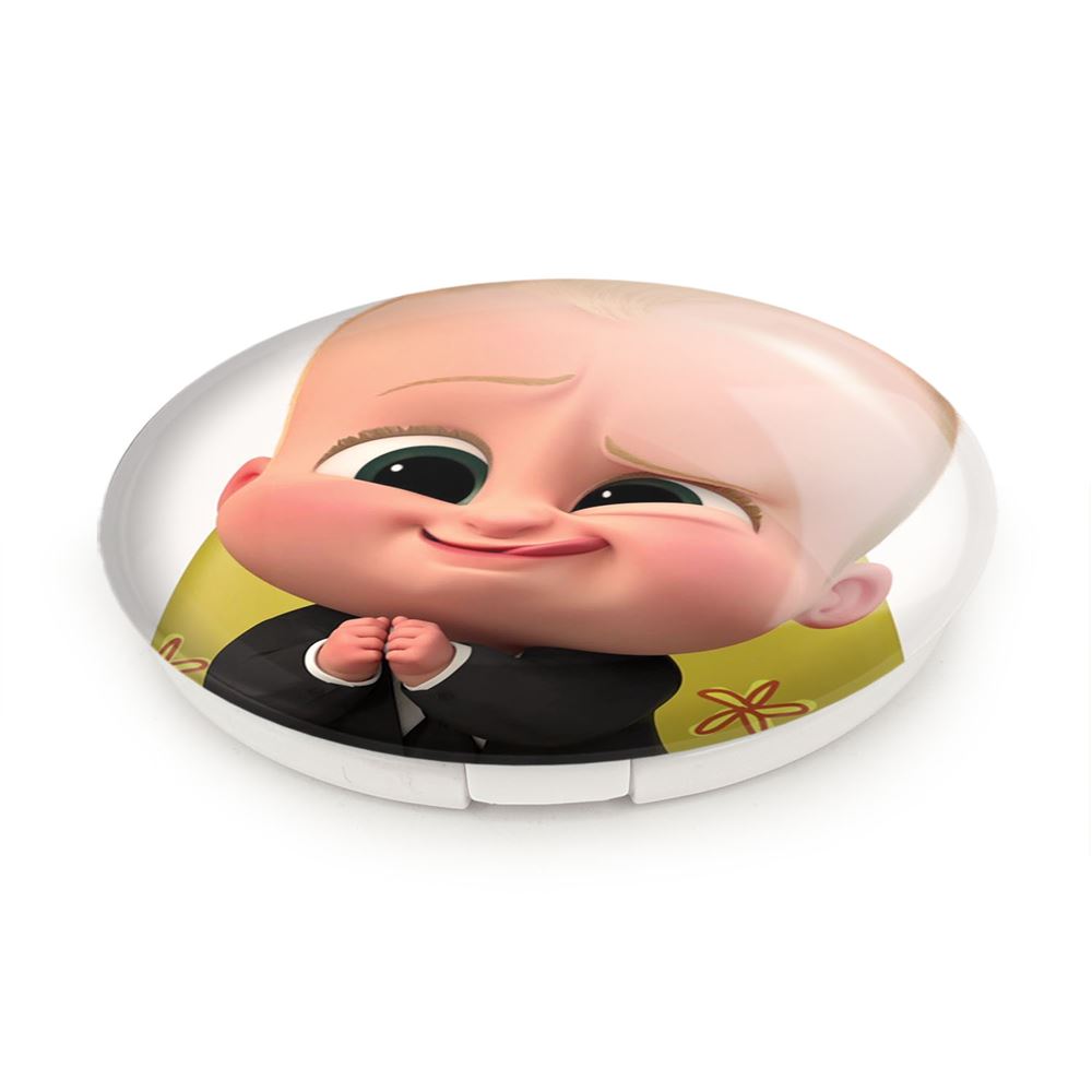 آینه های تاشو انیمیشن بچه رئیس The Boss Baby خندالو، از جنس پلاستیک فشرده ABS تولید شده و به رنگ سفید می باشد. یکی از آینه ها ابعاد واقعی را نشان داده و دیگری با قابلیت بزرگنمایی، جزئیات را بهتر نمایش می دهد. ابعاد هر یک از آینه ها، دایره ای به قطر 7.5 سانت می باشد که نه خیلی بزرگ و غیر قابل استفاده در کیف آرایشی ست و نه خیلی کوچک که تصویر خاصی در آن مشاهده نشود. آینه تاشو انیمیشن بچه رئیس The Boss Baby سایزی استاندارد و کارآمد دارد و در هر کیفی جا میگیرد. چاپ طرح بوسیله چاپگرهای دیجیتال شش رنگ با شفافیت و کیفیتی مثال زدنی بر روی یک وجه از بدنه ی آینه انجام گرفته و با روکش لمینت حرارتی پوشیده شده که در مقابل آسیب و خط و خش مقاوم بوده و کیفیت بالایی دارد. درب آینه بوسیله قفل بدنه ی آن، باز نمی ماند و کاملا بسته می شود و مناسب قرار گیری در کیف لوازم آرایش و کیف های کوچک دستی نیز هست. آینه های تاشو انیمیشن بچه رئیس The Boss Baby خندالو با تنوع طرحی بسیار بالا، سلیقه هر نوع مخاطبی را تامین میکند.