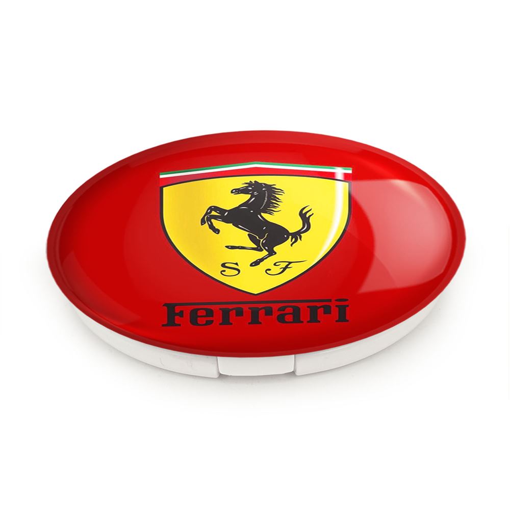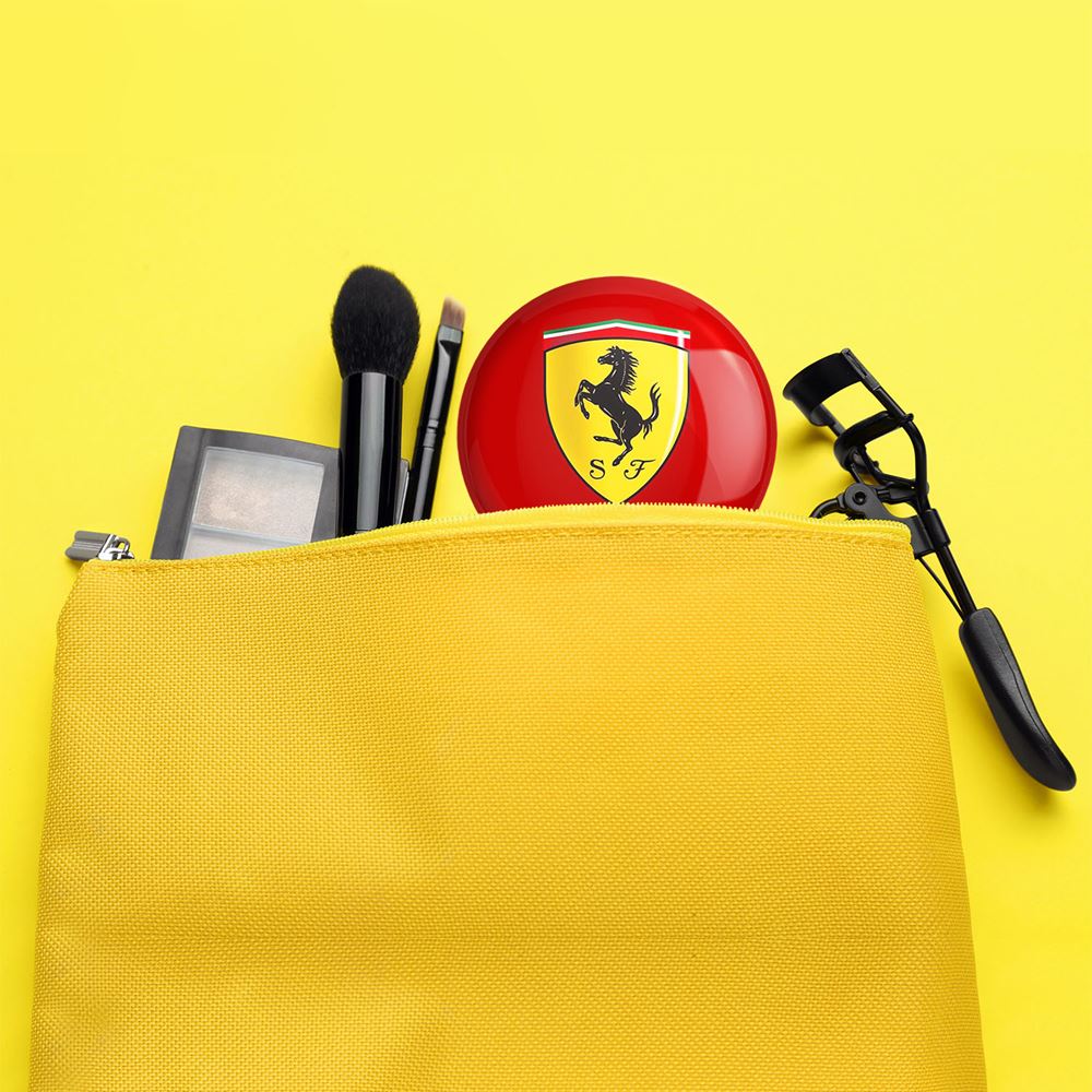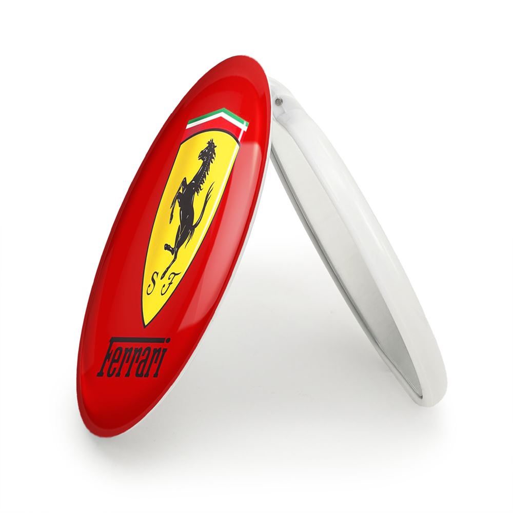آینه های تاشو فراری Ferrari خندالو، از جنس پلاستیک فشرده ABS تولید شده و به رنگ سفید می باشد. یکی از آینه ها ابعاد واقعی را نشان داده و دیگری با قابلیت بزرگنمایی، جزئیات را بهتر نمایش می دهد. ابعاد هر یک از آینه ها، دایره ای به قطر 7.5 سانت می باشد که نه خیلی بزرگ و غیر قابل استفاده در کیف آرایشی ست و نه خیلی کوچک که تصویر خاصی در آن مشاهده نشود. آینه تاشو فراری Ferrari سایزی استاندارد و کارآمد دارد و در هر کیفی جا میگیرد. چاپ طرح بوسیله چاپگرهای دیجیتال شش رنگ با شفافیت و کیفیتی مثال زدنی بر روی یک وجه از بدنه ی آینه انجام گرفته و با روکش لمینت حرارتی پوشیده شده که در مقابل آسیب و خط و خش مقاوم بوده و کیفیت بالایی دارد. درب آینه بوسیله قفل بدنه ی آن، باز نمی ماند و کاملا بسته می شود و مناسب قرار گیری در کیف لوازم آرایش و کیف های کوچک دستی نیز هست. آینه های تاشو فراری Ferrari خندالو با تنوع طرحی بسیار بالا، سلیقه هر نوع مخاطبی را تامین میکند.