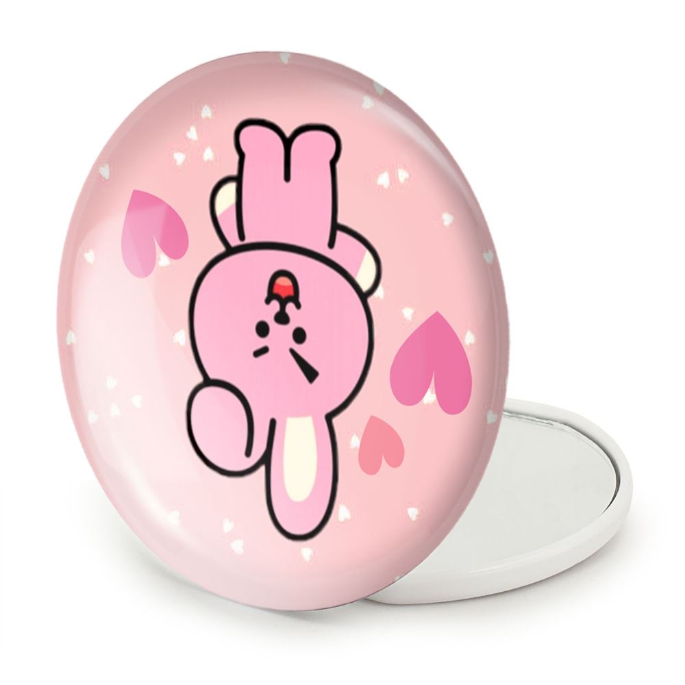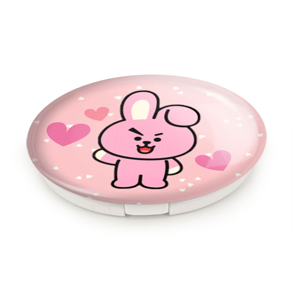 آینه های تاشو کوکی BT21 Cooky خندالو، از جنس پلاستیک فشرده ABS تولید شده و به رنگ سفید می باشد. یکی از آینه ها ابعاد واقعی را نشان داده و دیگری با قابلیت بزرگنمایی، جزئیات را بهتر نمایش می دهد.