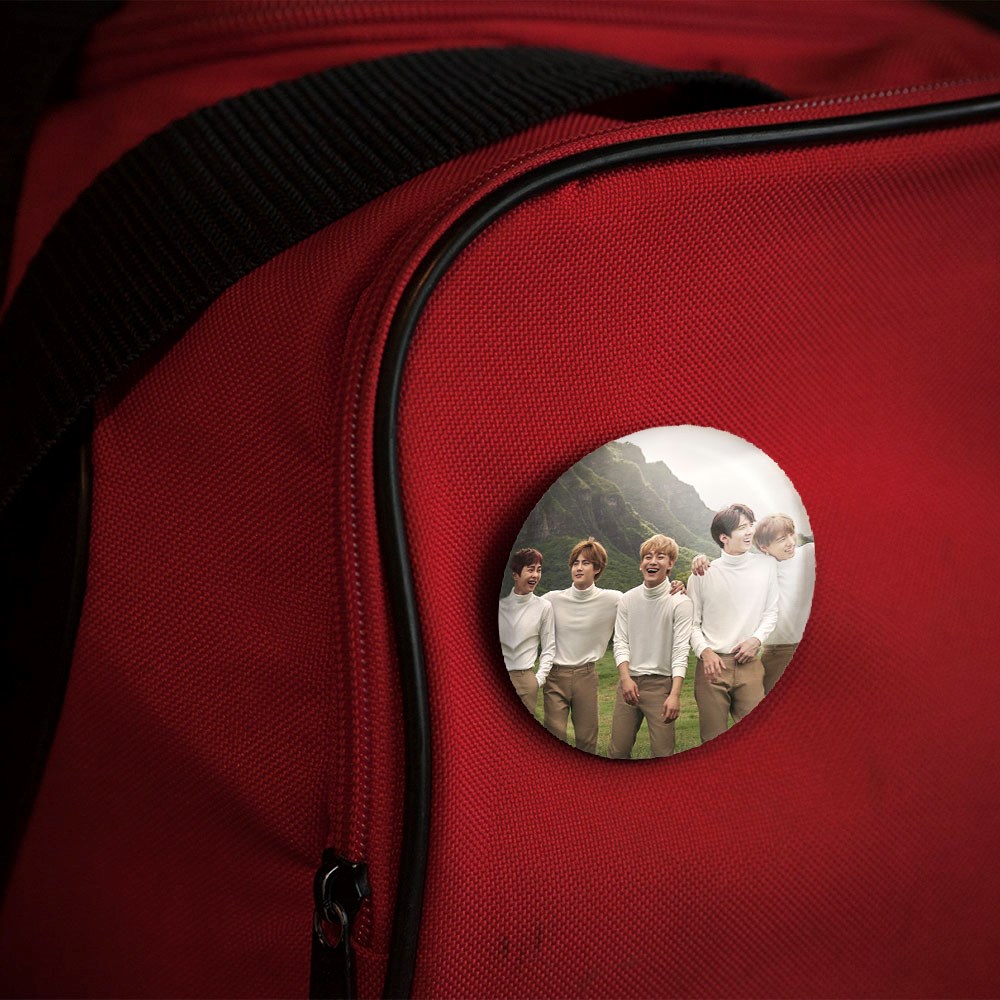 پیکسل 44 میلی متری گروه موسیقی اکسو EXO خندالو با روکش سلفون حرارتی مات مخملی ضدخش و قطعه پشتی رنگی تولید شده است.پلاستیکی پشت پیکسل با سوزن یک تکه ثابت و بدون لغزش و جا به جایی، ایستایی بسیار بهتری نسبت به پشتی فلزی پیکسل دارند که این مهم در تولید این محصول نیز رعایت شده است.
