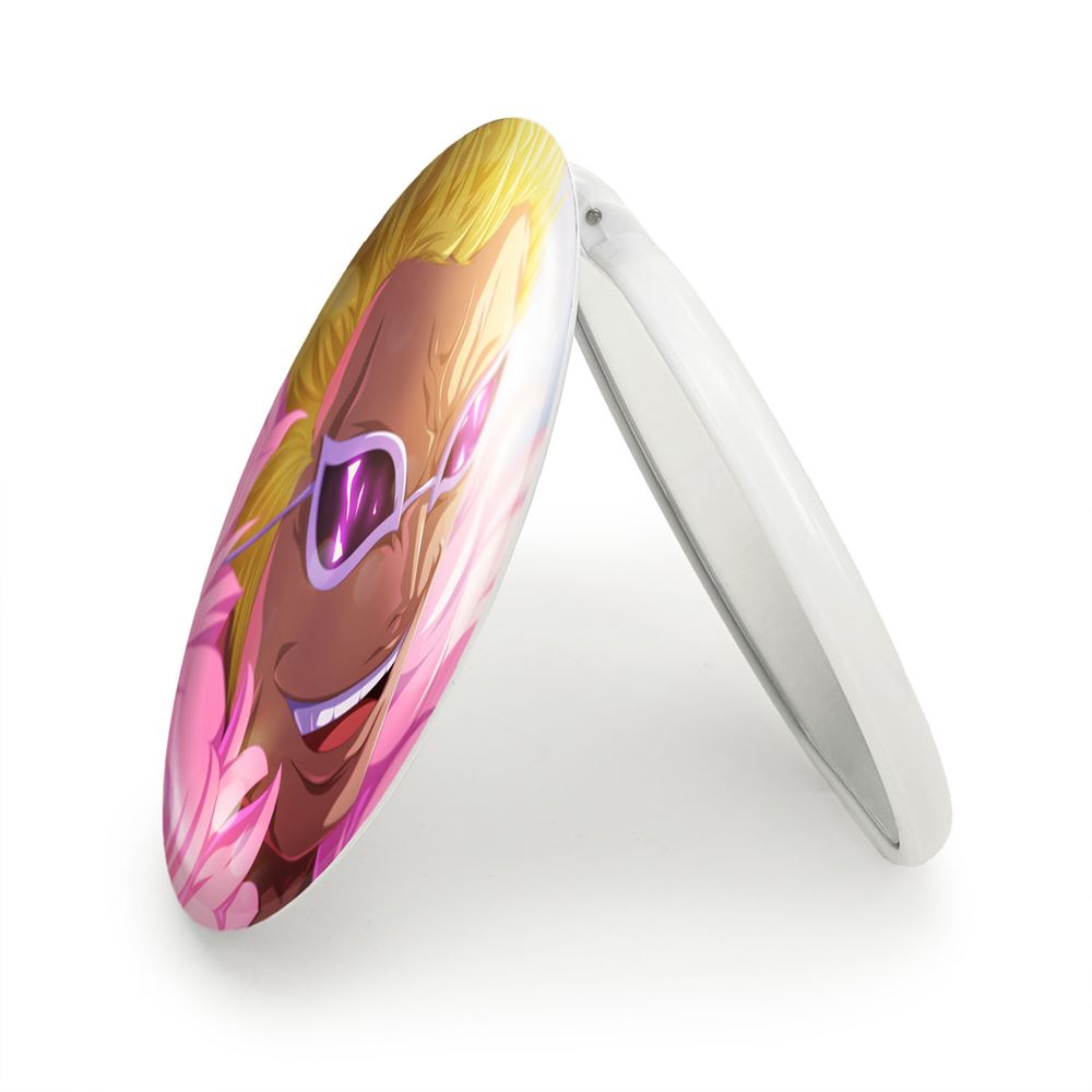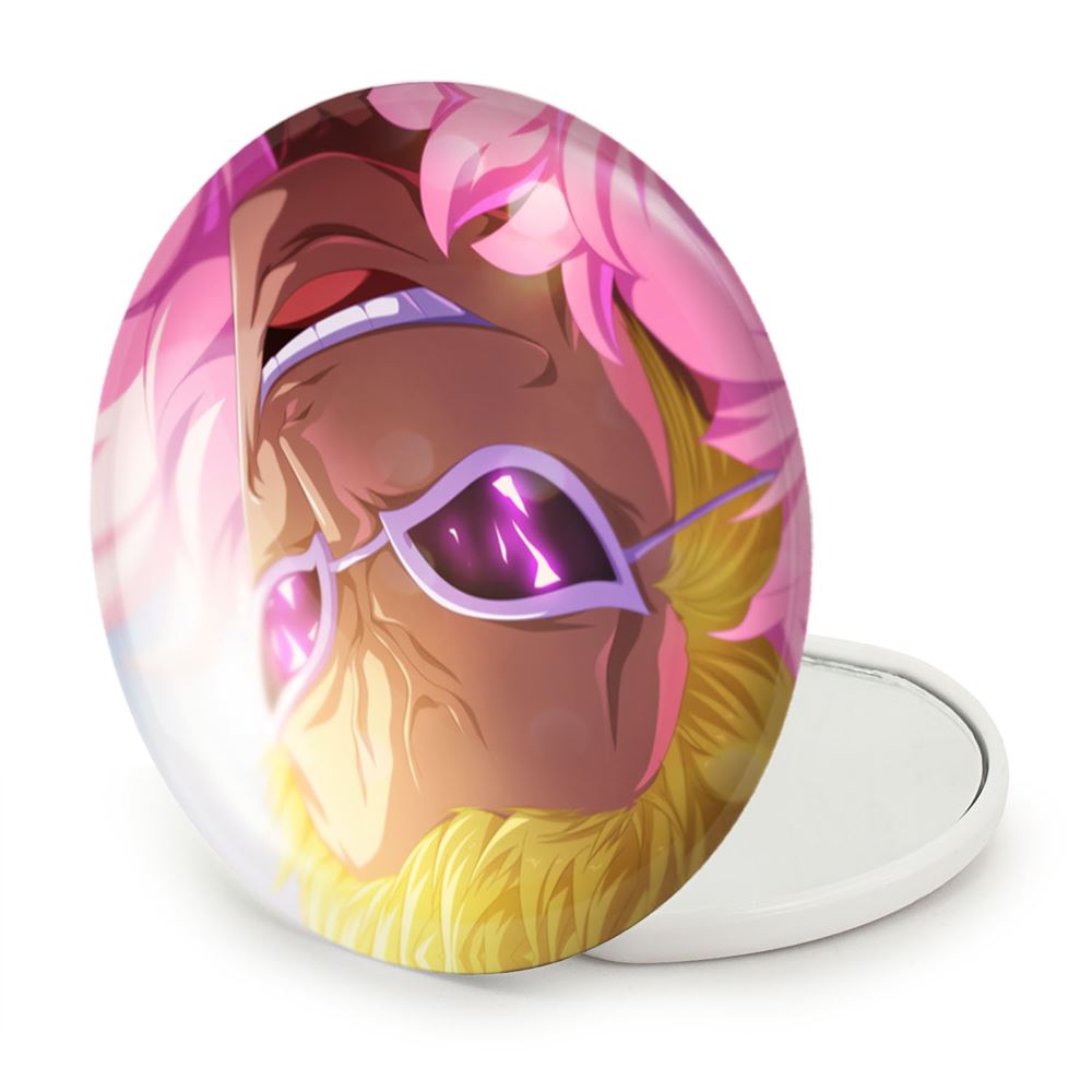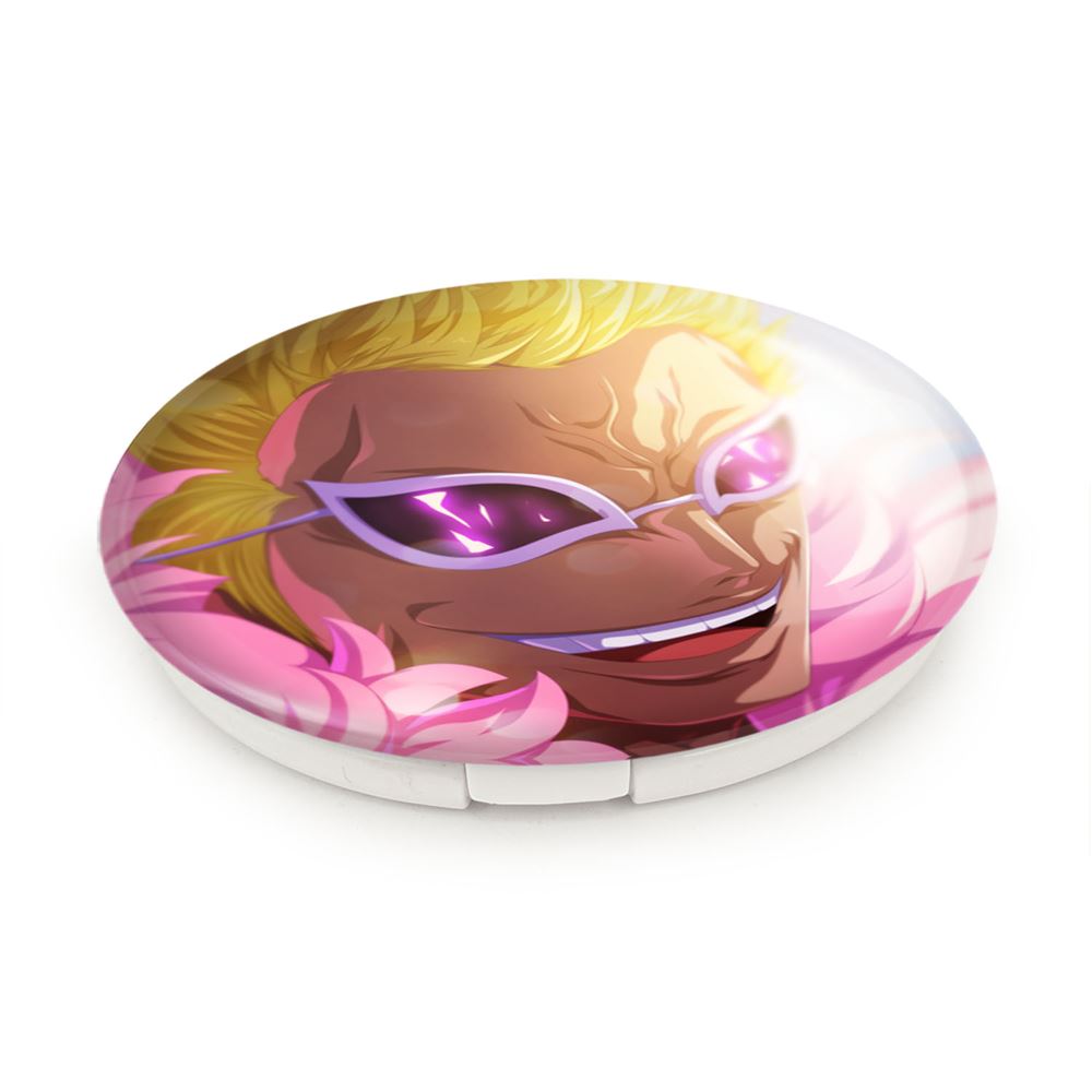 آینه های تاشو دون کیشوت دوفلامینگو انیمه وان پیس One Piece خندالو، از جنس پلاستیک فشرده ABS تولید شده و به رنگ سفید می باشد. یکی از آینه ها ابعاد واقعی را نشان داده و دیگری با قابلیت بزرگنمایی، جزئیات را بهتر نمایش می دهد. ابعاد هر یک از آینه ها، دایره ای به قطر 7.5 سانت می باشد که نه خیلی بزرگ و غیر قابل استفاده در کیف آرایشی ست و نه خیلی کوچک که تصویر خاصی در آن مشاهده نشود. آینه تاشو دون کیشوت دوفلامینگو انیمه وان پیس One Piece سایزی استاندارد و کارآمد دارد و در هر کیفی جا میگیرد. چاپ طرح بوسیله چاپگرهای دیجیتال شش رنگ با شفافیت و کیفیتی مثال زدنی بر روی یک وجه از بدنه ی آینه انجام گرفته و با روکش لمینت حرارتی پوشیده شده که در مقابل آسیب و خط و خش مقاوم بوده و کیفیت بالایی دارد. درب آینه بوسیله قفل بدنه ی آن، باز نمی ماند و کاملا بسته می شود و مناسب قرار گیری در کیف لوازم آرایش و کیف های کوچک دستی نیز هست. آینه های تاشو دون کیشوت دوفلامینگو انیمه وان پیس One Piece خندالو با تنوع طرحی بسیار بالا، سلیقه هر نوع مخاطبی را تامین میکند.