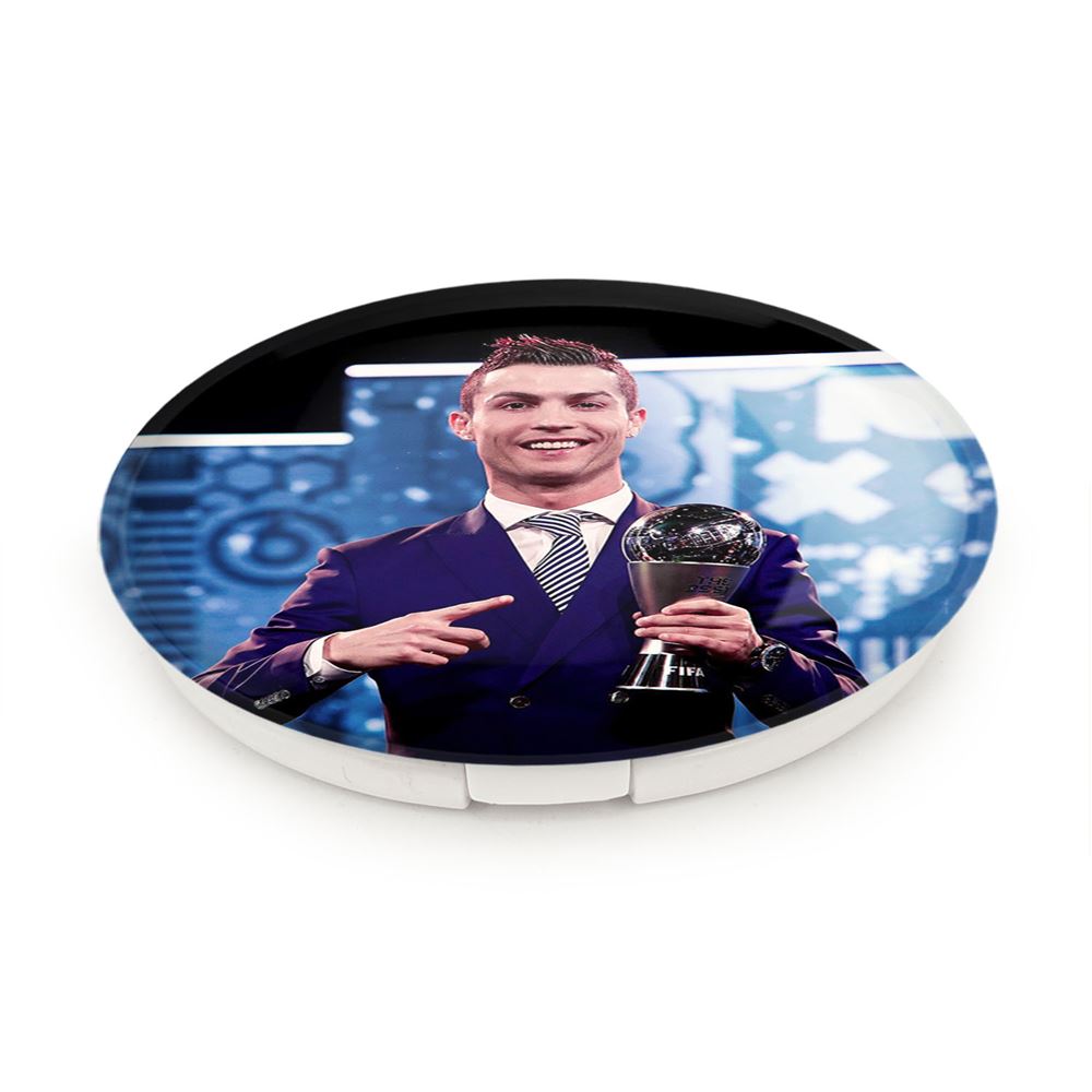 آینه های تاشو کریستیانو رونالدو خندالو، از جنس پلاستیک فشرده ABS تولید شده و به رنگ سفید می باشد. یکی از آینه ها ابعاد واقعی را نشان داده و دیگری با قابلیت بزرگنمایی، جزئیات را بهتر نمایش می دهد.