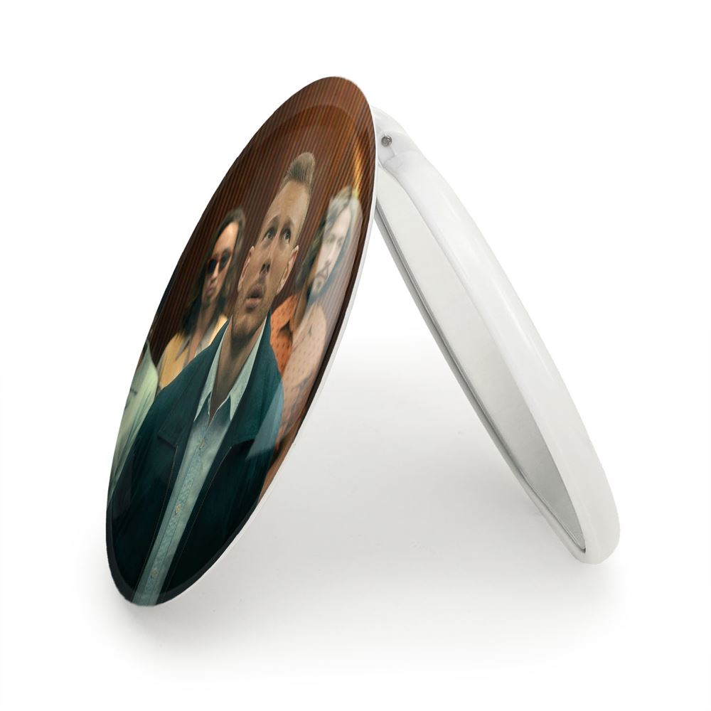 آینه های تاشو لوثر هارگریوز سریال آکادمی آمبرلا The Umberella Academy خندالو، از جنس پلاستیک فشرده ABS تولید شده و به رنگ سفید می باشد. یکی از آینه ها ابعاد واقعی را نشان داده و دیگری با قابلیت بزرگنمایی، جزئیات را بهتر نمایش می دهد. ابعاد هر یک از آینه ها، دایره ای به قطر 7.5 سانت می باشد که نه خیلی بزرگ و غیر قابل استفاده در کیف آرایشی ست و نه خیلی کوچک که تصویر خاصی در آن مشاهده نشود. آینه تاشو لوثر هارگریوز سریال آکادمی آمبرلا The Umberella Academy سایزی استاندارد و کارآمد دارد و در هر کیفی جا میگیرد. چاپ طرح بوسیله چاپگرهای دیجیتال شش رنگ با شفافیت و کیفیتی مثال زدنی بر روی یک وجه از بدنه ی آینه انجام گرفته و با روکش لمینت حرارتی پوشیده شده که در مقابل آسیب و خط و خش مقاوم بوده و کیفیت بالایی دارد. درب آینه بوسیله قفل بدنه ی آن، باز نمی ماند و کاملا بسته می شود و مناسب قرار گیری در کیف لوازم آرایش و کیف های کوچک دستی نیز هست. آینه های تاشو لوثر هارگریوز سریال آکادمی آمبرلا The Umberella Academy خندالو با تنوع طرحی بسیار بالا، سلیقه هر نوع مخاطبی را تامین میکند.