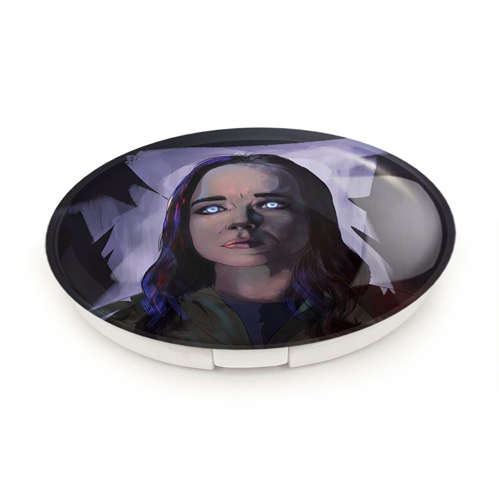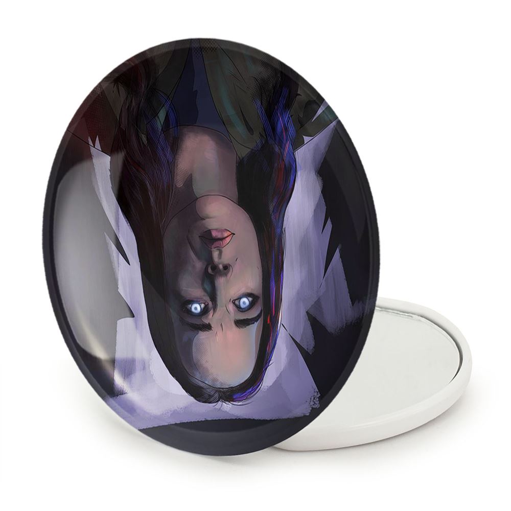 آینه های تاشو ویکتور هارگریوز سریال آکادمی آمبرلا The Umberella Academy خندالو، از جنس پلاستیک فشرده ABS تولید شده و به رنگ سفید می باشد. یکی از آینه ها ابعاد واقعی را نشان داده و دیگری با قابلیت بزرگنمایی، جزئیات را بهتر نمایش می دهد. ابعاد هر یک از آینه ها، دایره ای به قطر 7.5 سانت می باشد که نه خیلی بزرگ و غیر قابل استفاده در کیف آرایشی ست و نه خیلی کوچک که تصویر خاصی در آن مشاهده نشود. آینه تاشو ویکتور هارگریوز سریال آکادمی آمبرلا The Umberella Academy سایزی استاندارد و کارآمد دارد و در هر کیفی جا میگیرد. چاپ طرح بوسیله چاپگرهای دیجیتال شش رنگ با شفافیت و کیفیتی مثال زدنی بر روی یک وجه از بدنه ی آینه انجام گرفته و با روکش لمینت حرارتی پوشیده شده که در مقابل آسیب و خط و خش مقاوم بوده و کیفیت بالایی دارد. درب آینه بوسیله قفل بدنه ی آن، باز نمی ماند و کاملا بسته می شود و مناسب قرار گیری در کیف لوازم آرایش و کیف های کوچک دستی نیز هست. آینه های تاشو ویکتور هارگریوز سریال آکادمی آمبرلا The Umberella Academy خندالو با تنوع طرحی بسیار بالا، سلیقه هر نوع مخاطبی را تامین میکند.