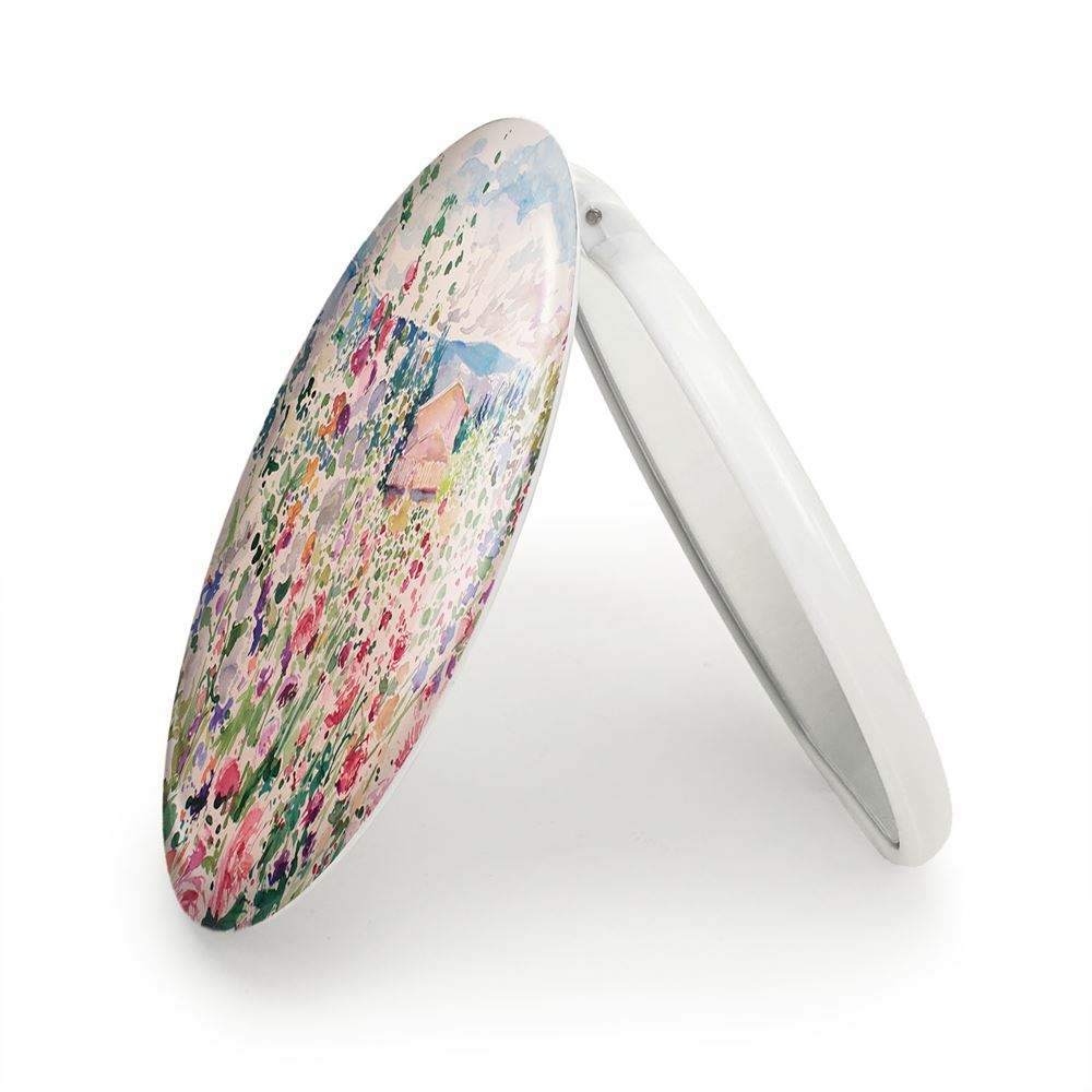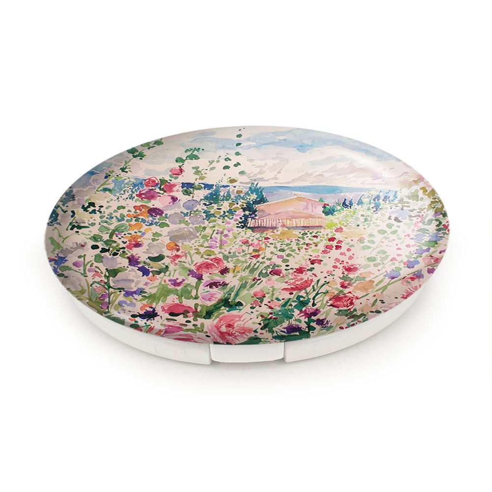 آینه های تاشو مزرعه گل خندالو، از جنس پلاستیک فشرده ABS تولید شده و به رنگ سفید می باشد. یکی از آینه ها ابعاد واقعی را نشان داده و دیگری با قابلیت بزرگنمایی، جزئیات را بهتر نمایش می دهد. ابعاد هر یک از آینه ها، دایره ای به قطر 7.5 سانت می باشد که نه خیلی بزرگ و غیر قابل استفاده در کیف آرایشی ست و نه خیلی کوچک که تصویر خاصی در آن مشاهده نشود. آینه تاشو مزرعه گل سایزی استاندارد و کارآمد دارد و در هر کیفی جا میگیرد. چاپ طرح بوسیله چاپگرهای دیجیتال شش رنگ با شفافیت و کیفیتی مثال زدنی بر روی یک وجه از بدنه ی آینه انجام گرفته و با روکش لمینت حرارتی پوشیده شده که در مقابل آسیب و خط و خش مقاوم بوده و کیفیت بالایی دارد. درب آینه بوسیله قفل بدنه ی آن، باز نمی ماند و کاملا بسته می شود و مناسب قرار گیری در کیف لوازم آرایش و کیف های کوچک دستی نیز هست. آینه های تاشو مزرعه گل خندالو با تنوع طرحی بسیار بالا، سلیقه هر نوع مخاطبی را تامین میکند.