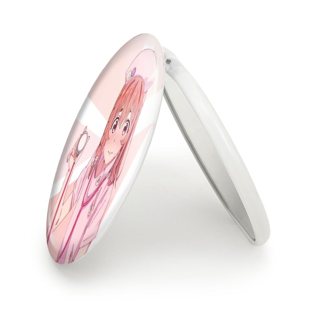 آینه های تاشو ساکوراساوا انیمه کانوجواوکاری خندالو، از جنس پلاستیک فشرده ABS تولید شده و به رنگ سفید می باشد. یکی از آینه ها ابعاد واقعی را نشان داده و دیگری با قابلیت بزرگنمایی، جزئیات را بهتر نمایش می دهد. ابعاد هر یک از آینه ها، دایره ای به قطر 7.5 سانت می باشد که نه خیلی بزرگ و غیر قابل استفاده در کیف آرایشی ست و نه خیلی کوچک که تصویر خاصی در آن مشاهده نشود. آینه تاشو ساکوراساوا انیمه کانوجواوکاری سایزی استاندارد و کارآمد دارد و در هر کیفی جا میگیرد. چاپ طرح بوسیله چاپگرهای دیجیتال شش رنگ با شفافیت و کیفیتی مثال زدنی بر روی یک وجه از بدنه ی آینه انجام گرفته و با روکش لمینت حرارتی پوشیده شده که در مقابل آسیب و خط و خش مقاوم بوده و کیفیت بالایی دارد. درب آینه بوسیله قفل بدنه ی آن، باز نمی ماند و کاملا بسته می شود و مناسب قرار گیری در کیف لوازم آرایش و کیف های کوچک دستی نیز هست. آینه های تاشو ساکوراساوا انیمه کانوجواوکاری خندالو با تنوع طرحی بسیار بالا، سلیقه هر نوع مخاطبی را تامین میکند.