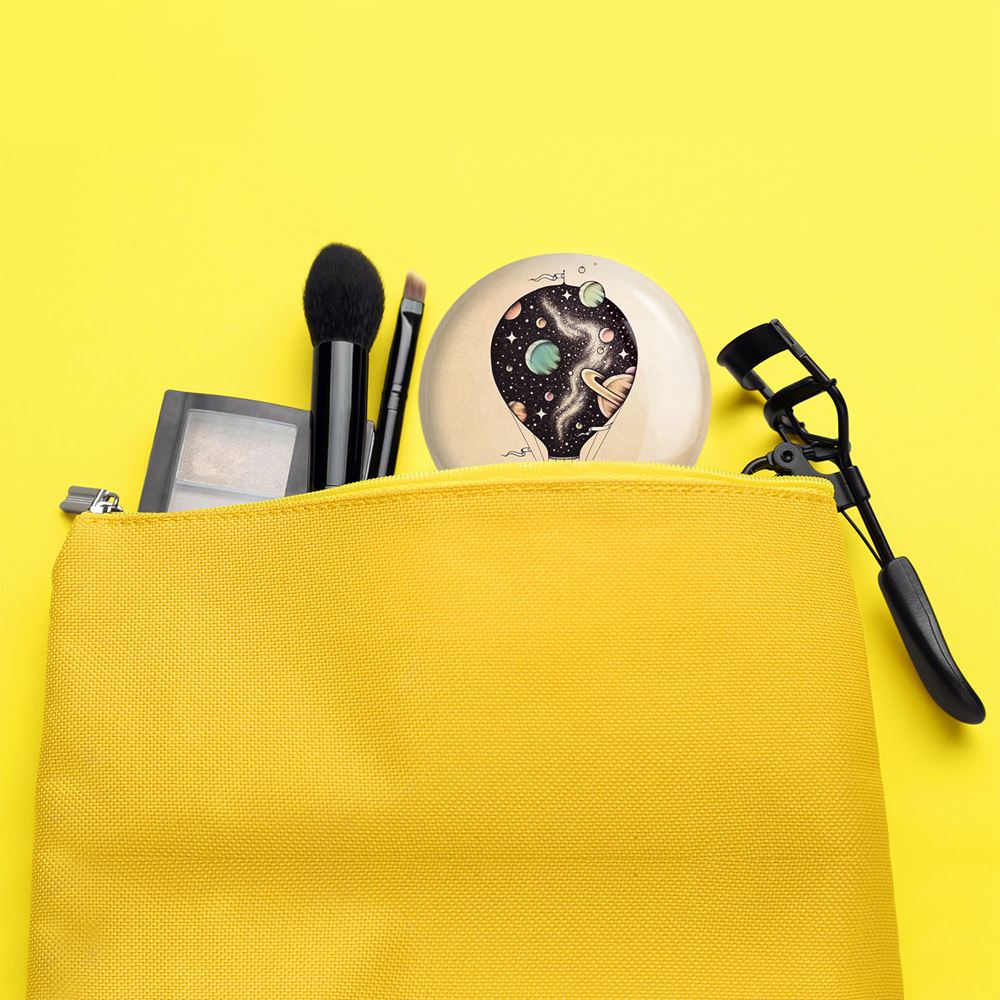 آینه های جیبی فضایی خندالو دایره ای به قطر 7.5 سانتی متر می باشد که نه خیلی بزرگ و غیر قابل استفاده در کیف آرایشی ست و نه خیلی کوچک که تصویر خاصی در آن مشاهده نشود. سایزی استاندارد و کارآمد دارد و مناسب قرار گیری در کیف لوازم آرایش و کیف های کوچک دستی نیز هست.