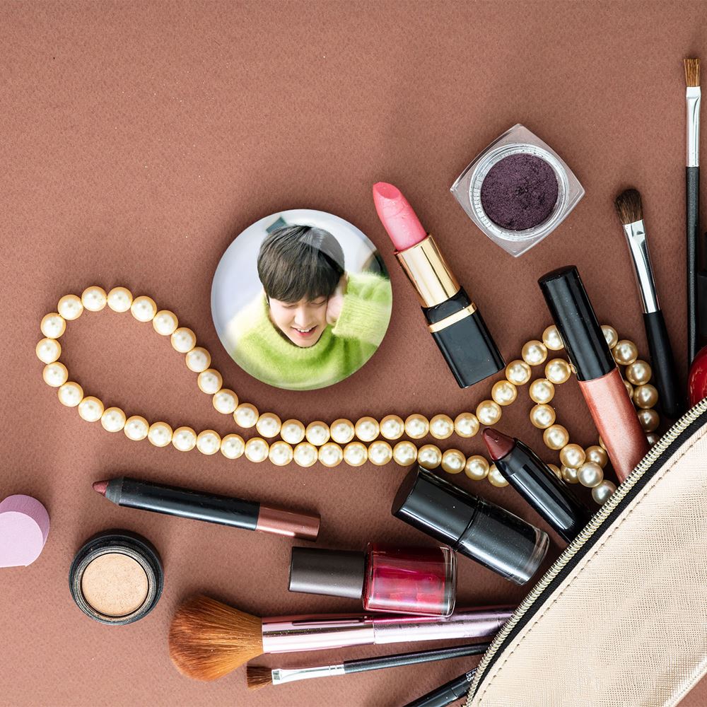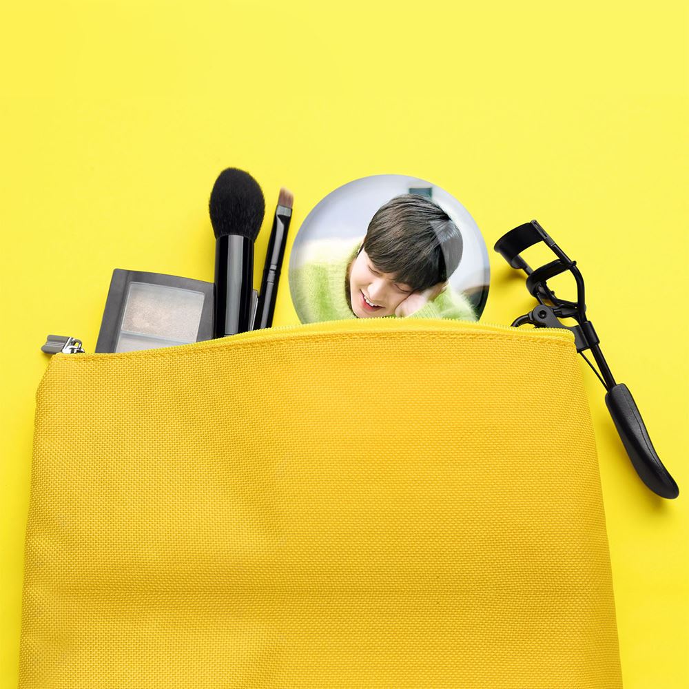 آینه های جیبی لی مین هو Lee min ho خندالو دایره ای به قطر 7.5 سانتی متر می باشد که نه خیلی بزرگ و غیر قابل استفاده در کیف آرایشی ست و نه خیلی کوچک که تصویر خاصی در آن مشاهده نشود. سایزی استاندارد و کارآمد دارد و مناسب قرار گیری در کیف لوازم آرایش و کیف های کوچک دستی نیز هست.