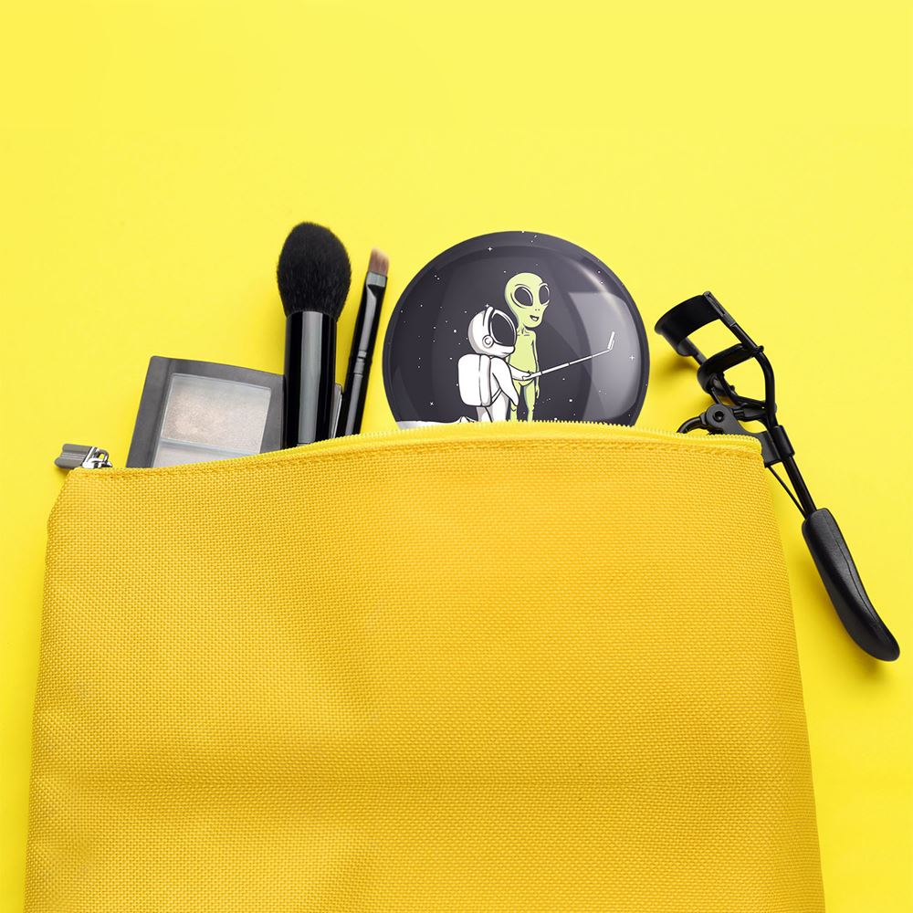 آینه های جیبی آدم فضایی و فضانورد خندالو دایره ای به قطر 7.5 سانتی متر می باشد که نه خیلی بزرگ و غیر قابل استفاده در کیف آرایشی ست و نه خیلی کوچک که تصویر خاصی در آن مشاهده نشود. سایزی استاندارد و کارآمد دارد و مناسب قرار گیری در کیف لوازم آرایش و کیف های کوچک دستی نیز هست.