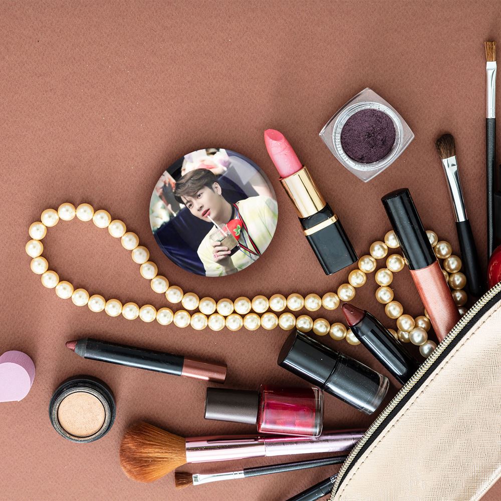 آینه های جیبی جکسون گروه گات سون GOT7 خندالو دایره ای به قطر 7.5 سانتی متر می باشد که نه خیلی بزرگ و غیر قابل استفاده در کیف آرایشی ست و نه خیلی کوچک که تصویر خاصی در آن مشاهده نشود. سایزی استاندارد و کارآمد دارد و مناسب قرار گیری در کیف لوازم آرایش و کیف های کوچک دستی نیز هست.