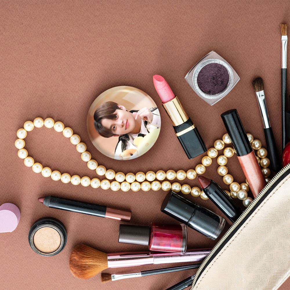 آینه های جیبی جونگهو گروه ایتیز ATEEZ خندالو دایره ای به قطر 7.5 سانتی متر می باشد که نه خیلی بزرگ و غیر قابل استفاده در کیف آرایشی ست و نه خیلی کوچک که تصویر خاصی در آن مشاهده نشود. سایزی استاندارد و کارآمد دارد و مناسب قرار گیری در کیف لوازم آرایش و کیف های کوچک دستی نیز هست.