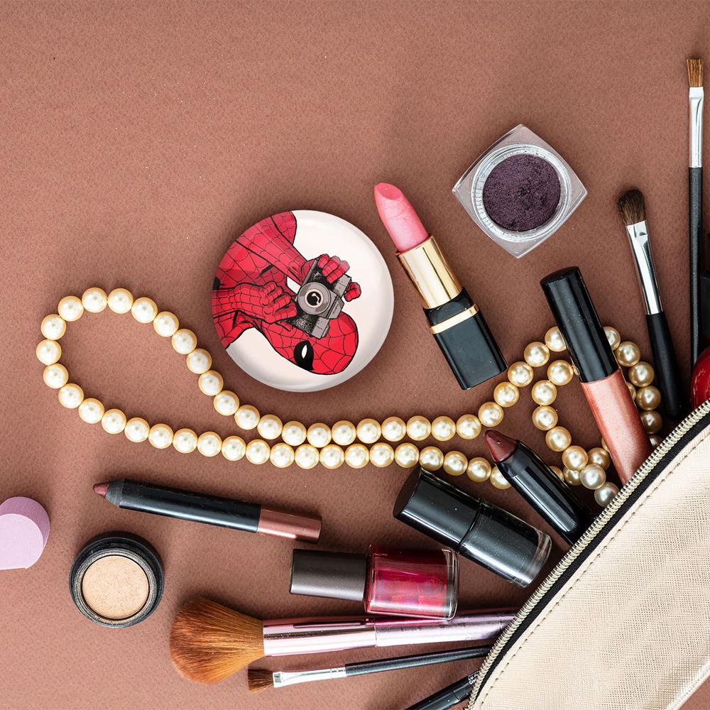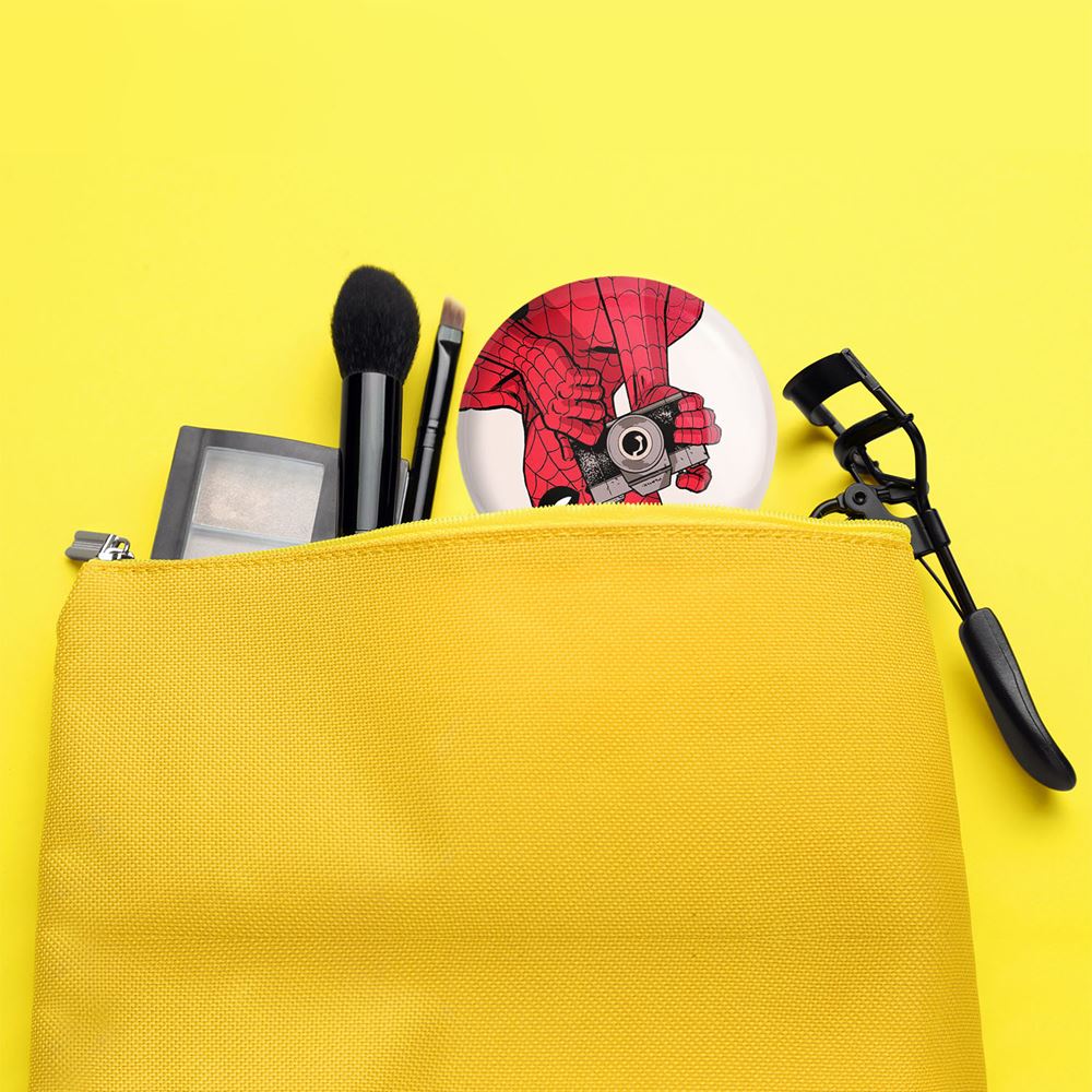 آینه های جیبی مرد عنکبوتی Spider Man خندالو دایره ای به قطر 7.5 سانتی متر می باشد که نه خیلی بزرگ و غیر قابل استفاده در کیف آرایشی ست و نه خیلی کوچک که تصویر خاصی در آن مشاهده نشود. سایزی استاندارد و کارآمد دارد و مناسب قرار گیری در کیف لوازم آرایش و کیف های کوچک دستی نیز هست.