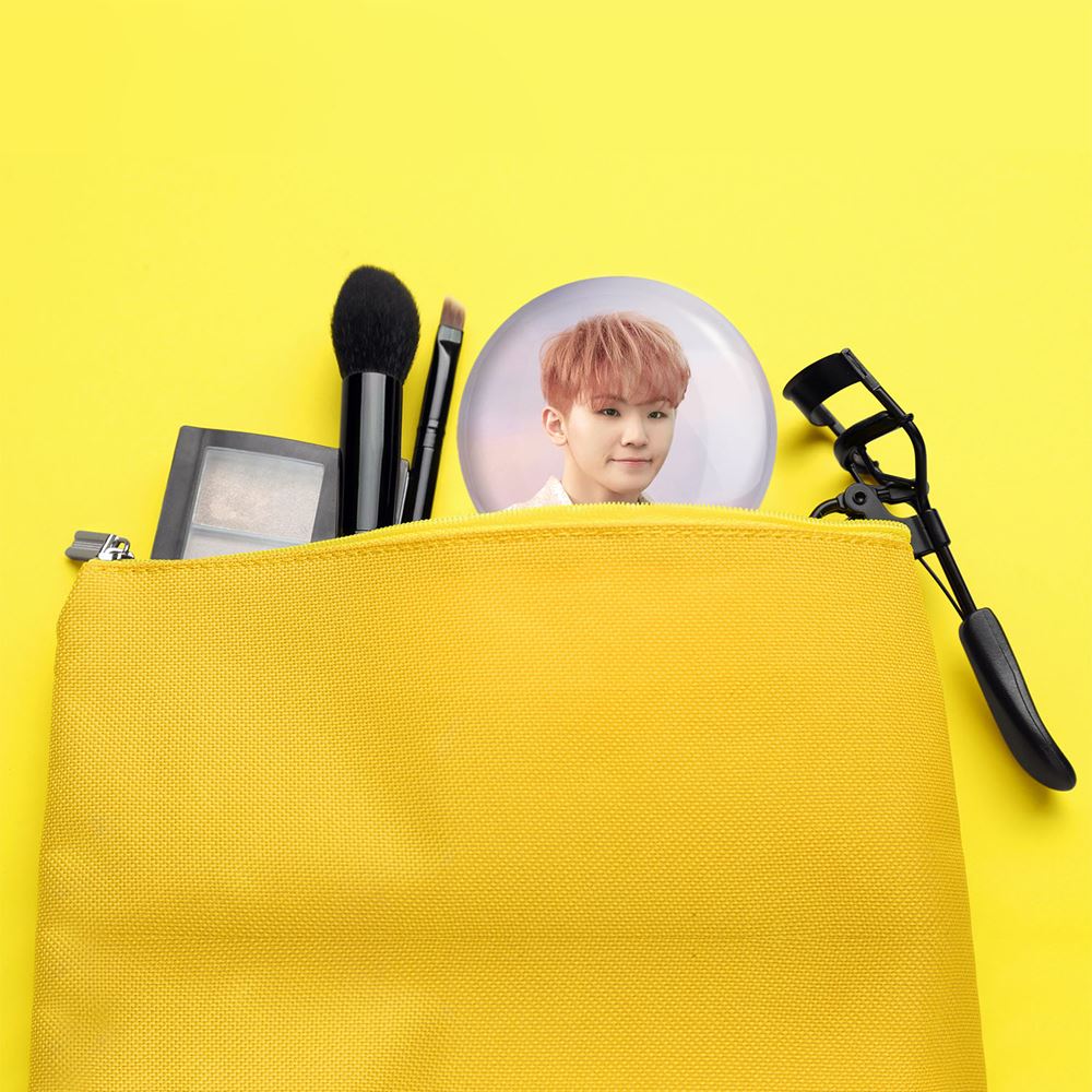 آینه های جیبی ووزی گروه سونتین Seventeen خندالو دایره ای به قطر 7.5 سانتی متر می باشد که نه خیلی بزرگ و غیر قابل استفاده در کیف آرایشی ست و نه خیلی کوچک که تصویر خاصی در آن مشاهده نشود. سایزی استاندارد و کارآمد دارد و مناسب قرار گیری در کیف لوازم آرایش و کیف های کوچک دستی نیز هست.