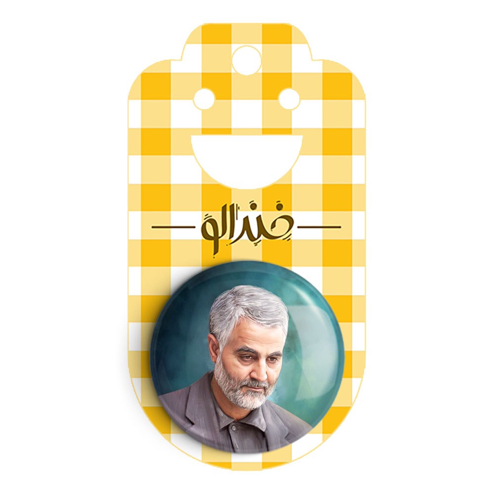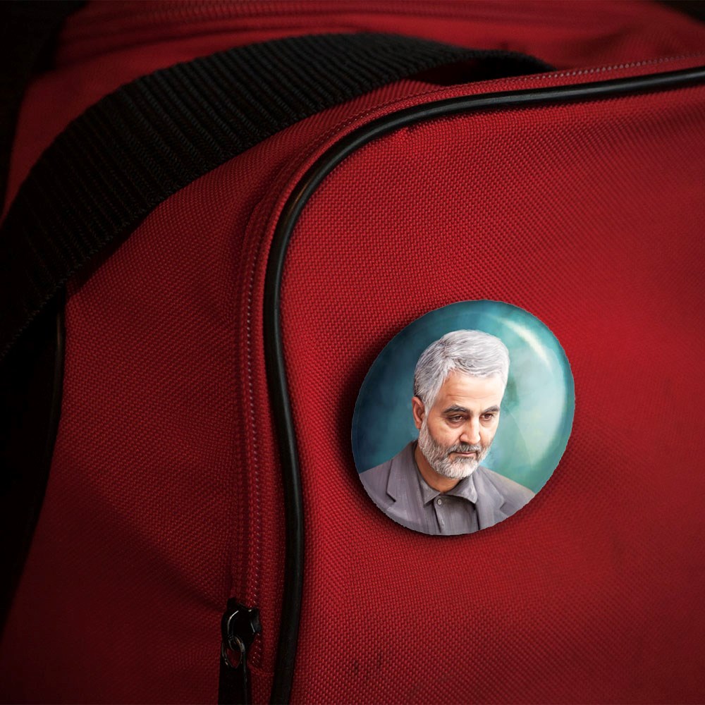 پیکسل 44 میلی متری سردار قاسم سلیمانی خندالو با روکش سلفون حرارتی مات مخملی ضدخش و قطعه پشتی رنگی تولید شده است.پلاستیکی پشت پیکسل با سوزن یک تکه ثابت و بدون لغزش و جا به جایی، ایستایی بسیار بهتری نسبت به پشتی فلزی پیکسل دارند که این مهم در تولید این محصول نیز رعایت شده است.