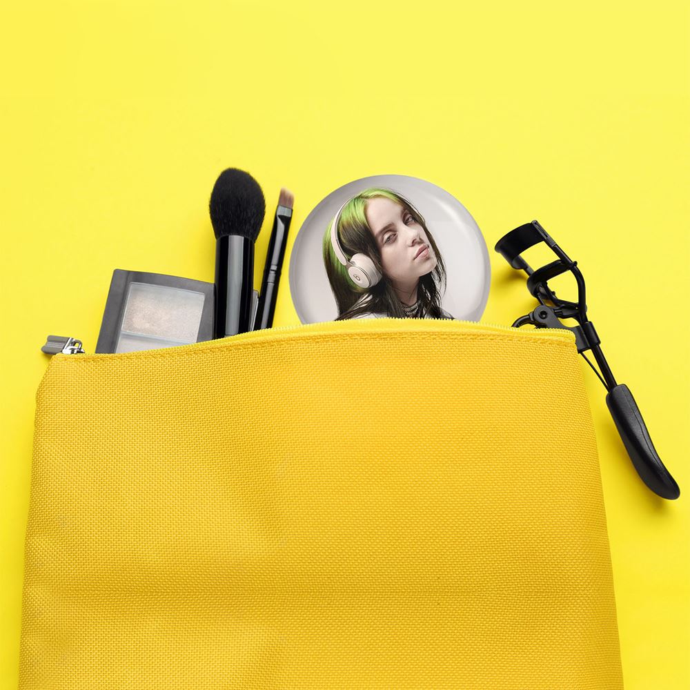 آینه های جیبی بیلی آیلیش Billie Eilish خندالو دایره ای به قطر 7.5 سانتی متر می باشد که نه خیلی بزرگ و غیر قابل استفاده در کیف آرایشی ست و نه خیلی کوچک که تصویر خاصی در آن مشاهده نشود. سایزی استاندارد و کارآمد دارد و مناسب قرار گیری در کیف لوازم آرایش و کیف های کوچک دستی نیز هست.