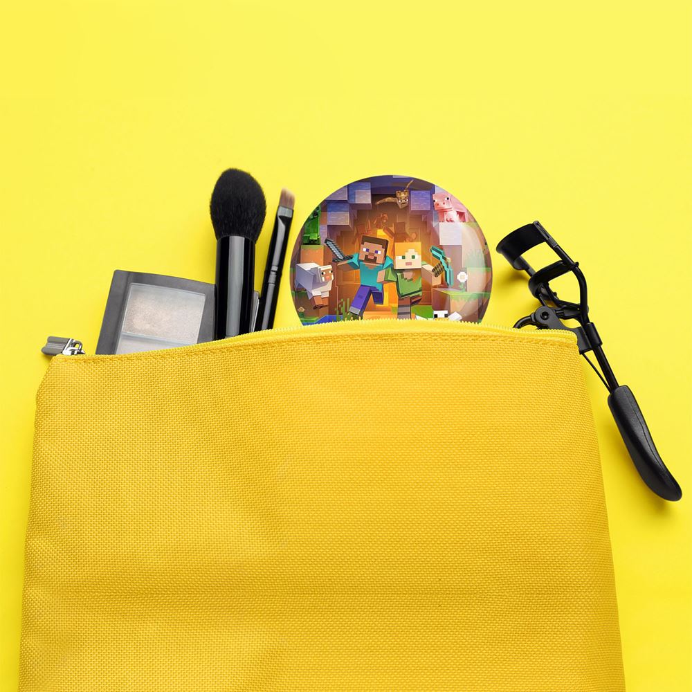 آینه های جیبی بازی ماینکرافت Minecraft خندالو دایره ای به قطر 7.5 سانتی متر می باشد که نه خیلی بزرگ و غیر قابل استفاده در کیف آرایشی ست و نه خیلی کوچک که تصویر خاصی در آن مشاهده نشود. سایزی استاندارد و کارآمد دارد و مناسب قرار گیری در کیف لوازم آرایش و کیف های کوچک دستی نیز هست.