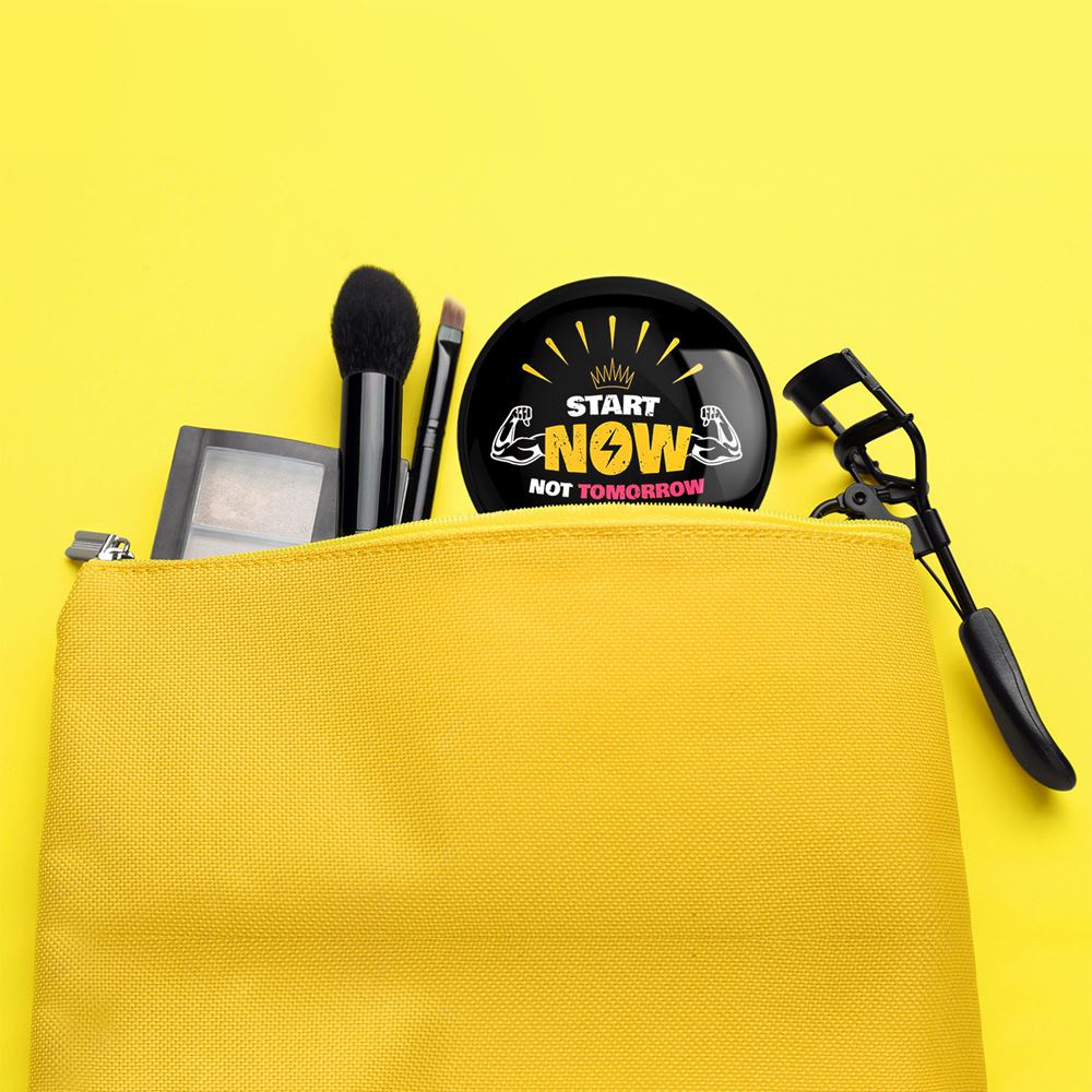 آینه های جیبی Start Now Not Tomorrow خندالو دایره ای به قطر 7.5 سانتی متر می باشد که نه خیلی بزرگ و غیر قابل استفاده در کیف آرایشی ست و نه خیلی کوچک که تصویر خاصی در آن مشاهده نشود. سایزی استاندارد و کارآمد دارد و مناسب قرار گیری در کیف لوازم آرایش و کیف های کوچک دستی نیز هست. بدنه ی آینه جیبی Start Now Not Tomorrow در قسمتی که آینه را در بر گرفته فلزی بوده و ظاهر براق و بسیار زیبایی دارد. چاپ طرح در پشت آینه بوسیله چاپگرهای دیجیتال شش رنگ با شفافیت و کیفیتی مثال زدنی انجام گرفته و با روکش لمینت حرارتی پوشیده شده که در مقابل آسیب و خط و خش مقاوم بوده و کیفیت بالایی دارد. آینه های جیبی Start Now Not Tomorrow خندالو با تنوع طرحی بسیار بالا، سلیقه هر نوع مخاطبی را تامین میکند.