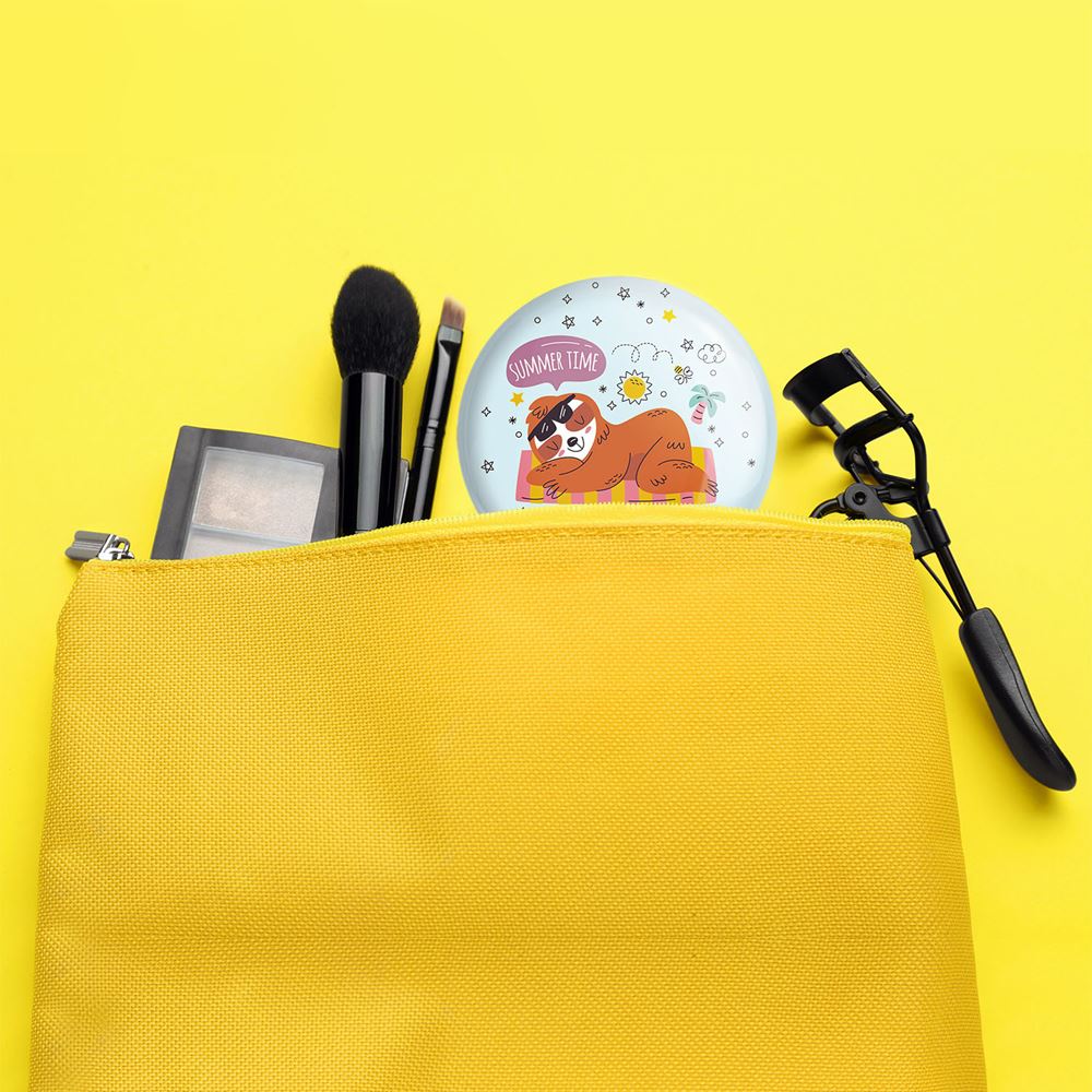آینه های جیبی تنبل خندالو دایره ای به قطر 7.5 سانتی متر می باشد که نه خیلی بزرگ و غیر قابل استفاده در کیف آرایشی ست و نه خیلی کوچک که تصویر خاصی در آن مشاهده نشود. سایزی استاندارد و کارآمد دارد و مناسب قرار گیری در کیف لوازم آرایش و کیف های کوچک دستی نیز هست. بدنه ی آینه جیبی تنبل در قسمتی که آینه را در بر گرفته فلزی بوده و ظاهر براق و بسیار زیبایی دارد. چاپ طرح در پشت آینه بوسیله چاپگرهای دیجیتال شش رنگ با شفافیت و کیفیتی مثال زدنی انجام گرفته و با روکش لمینت حرارتی پوشیده شده که در مقابل آسیب و خط و خش مقاوم بوده و کیفیت بالایی دارد. آینه های جیبی تنبل خندالو با تنوع طرحی بسیار بالا، سلیقه هر نوع مخاطبی را تامین میکند.
