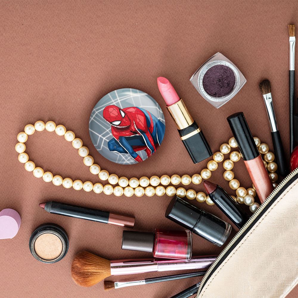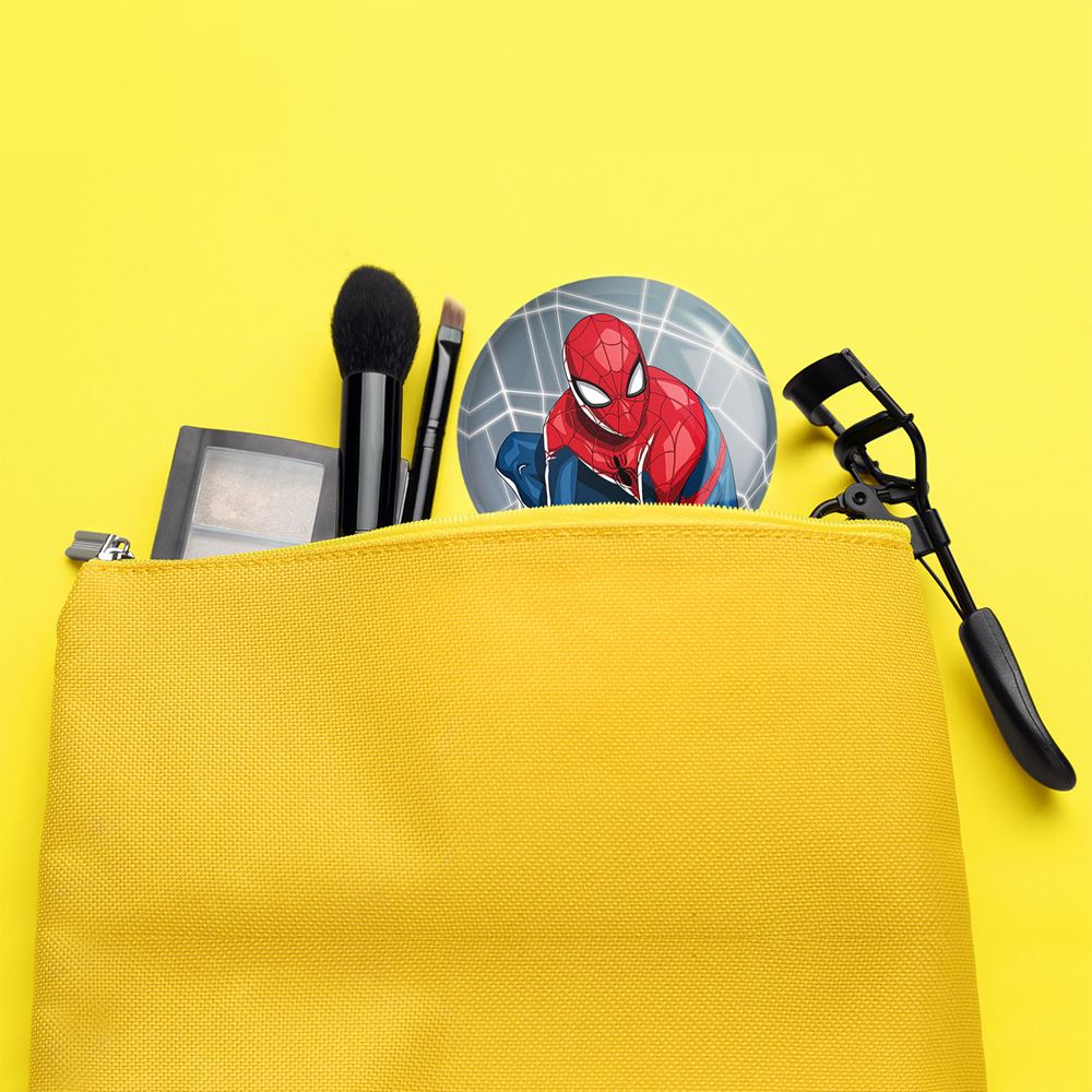 آینه های جیبی مرد عنکبوتی Spider Man خندالو دایره ای به قطر 7.5 سانتی متر می باشد که نه خیلی بزرگ و غیر قابل استفاده در کیف آرایشی ست و نه خیلی کوچک که تصویر خاصی در آن مشاهده نشود. سایزی استاندارد و کارآمد دارد و مناسب قرار گیری در کیف لوازم آرایش و کیف های کوچک دستی نیز هست.