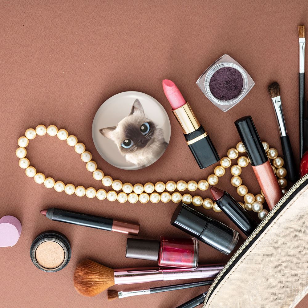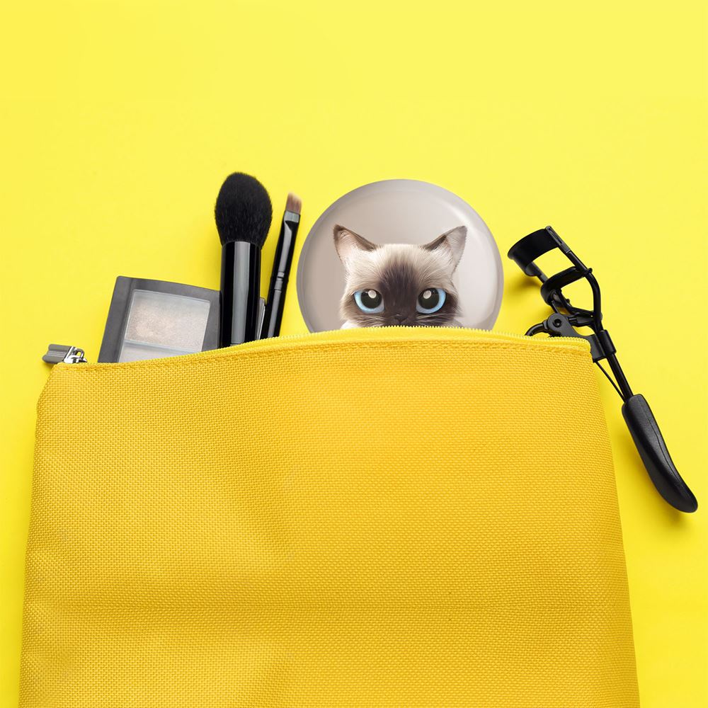 آینه های جیبی گربه خندالو دایره ای به قطر 7.5 سانتی متر می باشد که نه خیلی بزرگ و غیر قابل استفاده در کیف آرایشی ست و نه خیلی کوچک که تصویر خاصی در آن مشاهده نشود. سایزی استاندارد و کارآمد دارد و مناسب قرار گیری در کیف لوازم آرایش و کیف های کوچک دستی نیز هست.