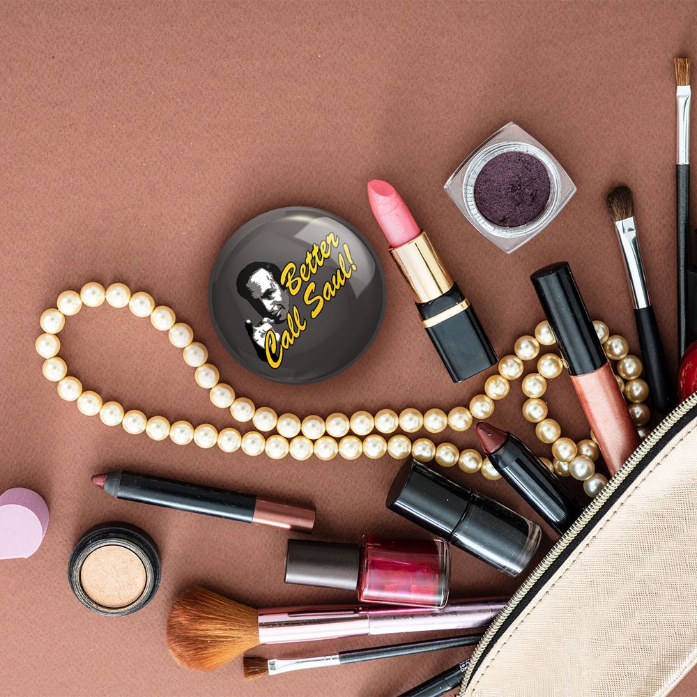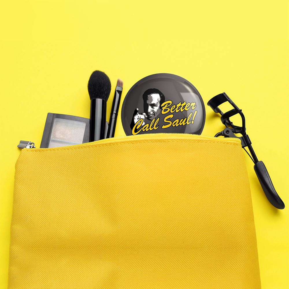 آینه های جیبی سریال بهتره با سال تماس بگیری Better Call Saul خندالو دایره ای به قطر 7.5 سانتی متر می باشد که نه خیلی بزرگ و غیر قابل استفاده در کیف آرایشی ست و نه خیلی کوچک که تصویر خاصی در آن مشاهده نشود. سایزی استاندارد و کارآمد دارد و مناسب قرار گیری در کیف لوازم آرایش و کیف های کوچک دستی نیز هست.