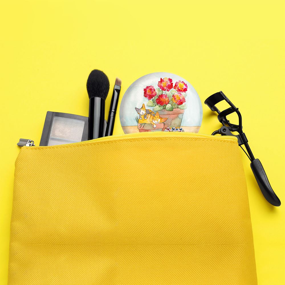 آینه های جیبی گلدان خندالو دایره ای به قطر 7.5 سانتی متر می باشد که نه خیلی بزرگ و غیر قابل استفاده در کیف آرایشی ست و نه خیلی کوچک که تصویر خاصی در آن مشاهده نشود. سایزی استاندارد و کارآمد دارد و مناسب قرار گیری در کیف لوازم آرایش و کیف های کوچک دستی نیز هست. بدنه ی آینه جیبی گلدان در قسمتی که آینه را در بر گرفته فلزی بوده و ظاهر براق و بسیار زیبایی دارد. چاپ طرح در پشت آینه بوسیله چاپگرهای دیجیتال شش رنگ با شفافیت و کیفیتی مثال زدنی انجام گرفته و با روکش لمینت حرارتی پوشیده شده که در مقابل آسیب و خط و خش مقاوم بوده و کیفیت بالایی دارد. آینه های جیبی گلدان خندالو با تنوع طرحی بسیار بالا، سلیقه هر نوع مخاطبی را تامین میکند.