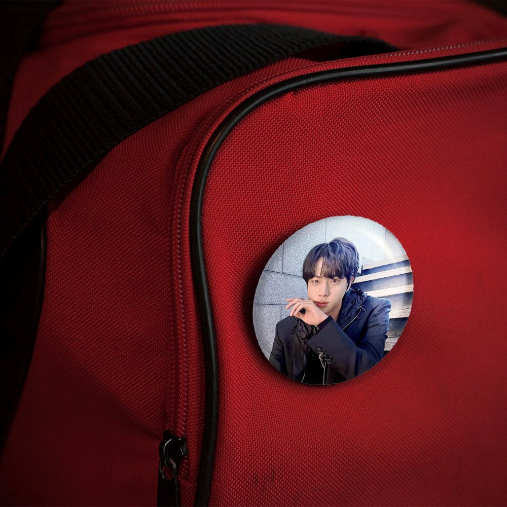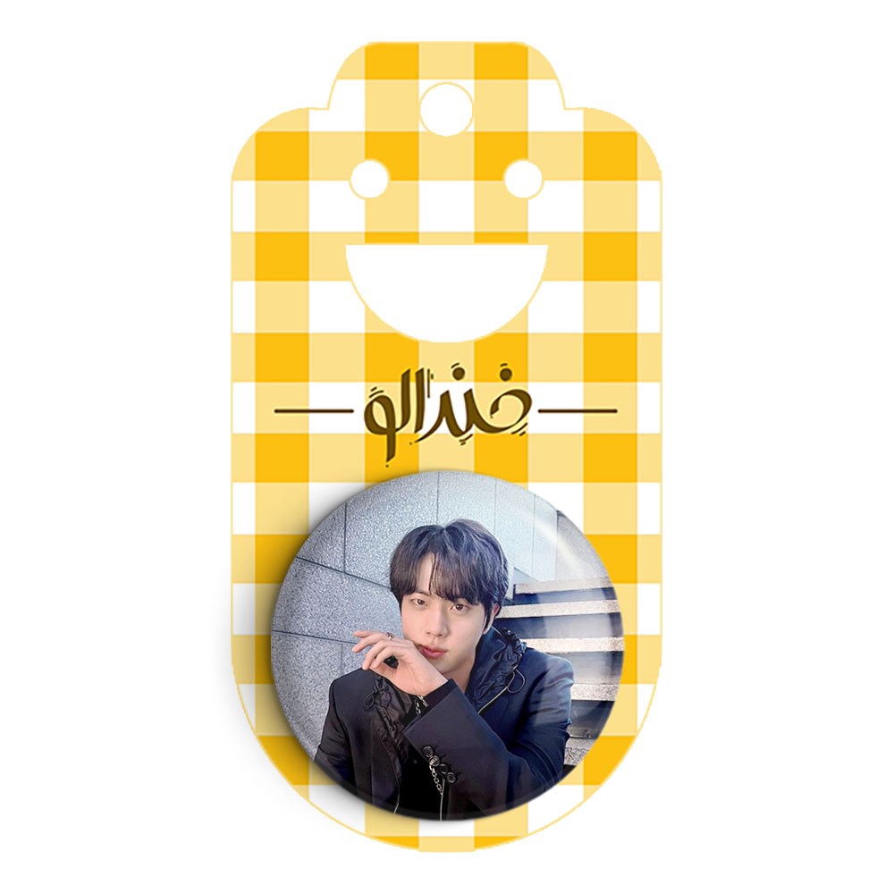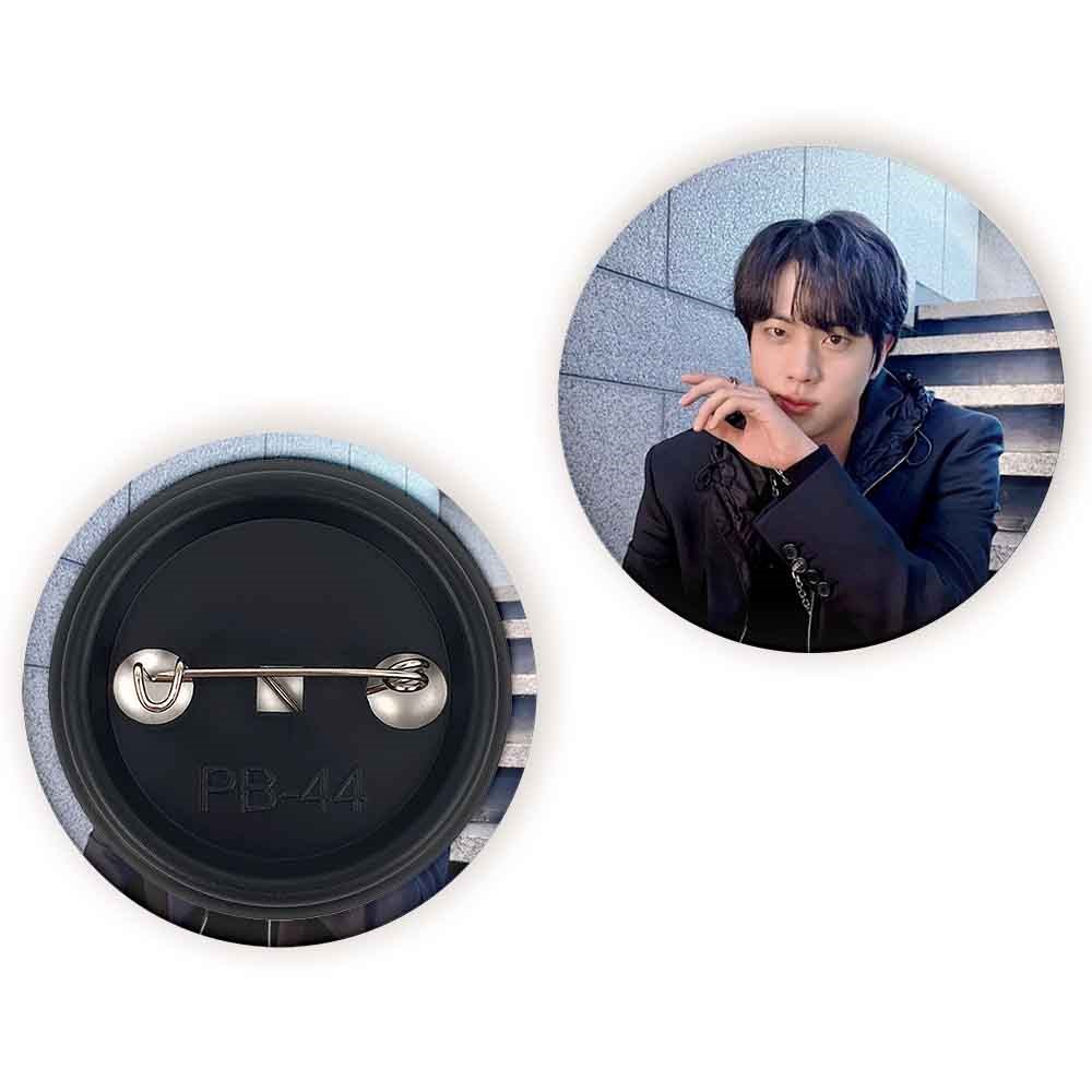 پیکسل 44 میلی متری جین Jin گروه بی تی اس BTS خندالو با روکش سلفون حرارتی مات مخملی ضدخش و قطعه پشتی رنگی تولید شده است.پلاستیکی پشت پیکسل با سوزن یک تکه ثابت و بدون لغزش و جا به جایی، ایستایی بسیار بهتری نسبت به پشتی فلزی پیکسل دارند که این مهم در تولید این محصول نیز رعایت شده است.