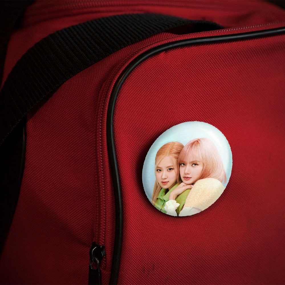 پیکسل 44 میلی متری لیسا و رزی گروه بلک پینک Black Pink خندالو با روکش سلفون حرارتی مات مخملی ضدخش و قطعه پشتی رنگی تولید شده است.پلاستیکی پشت پیکسل با سوزن یک تکه ثابت و بدون لغزش و جا به جایی، ایستایی بسیار بهتری نسبت به پشتی فلزی پیکسل دارند که این مهم در تولید این محصول نیز رعایت شده است.