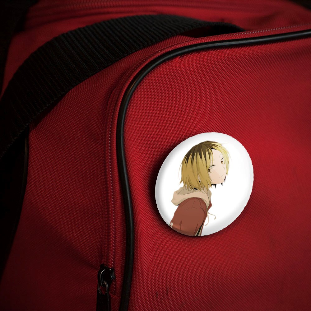 پیکسل 44 میلی متری کوزومه کنما انیمه هایکیو Haikyu خندالو با روکش سلفون حرارتی مات مخملی ضدخش و قطعه پشتی رنگی تولید شده است.پلاستیکی پشت پیکسل با سوزن یک تکه ثابت و بدون لغزش و جا به جایی، ایستایی بسیار بهتری نسبت به پشتی فلزی پیکسل دارند که این مهم در تولید این محصول نیز رعایت شده است.
