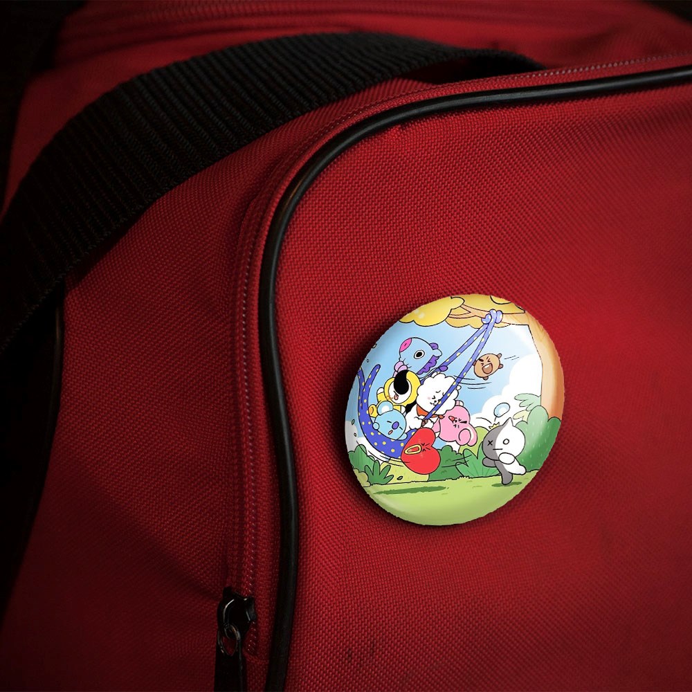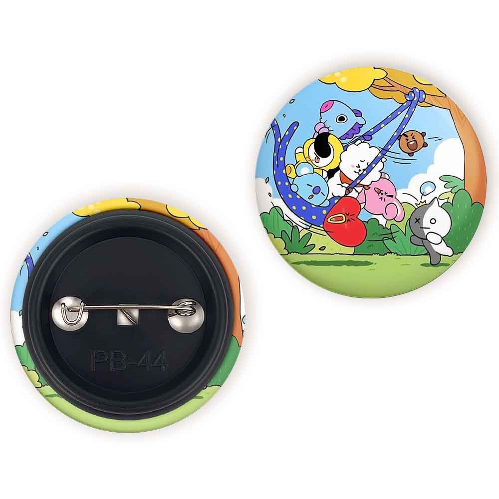 پیکسل 44 میلی متری BT21 خندالو با روکش سلفون حرارتی مات مخملی ضدخش و قطعه پشتی رنگی تولید شده است.پلاستیکی پشت پیکسل با سوزن یک تکه ثابت و بدون لغزش و جا به جایی، ایستایی بسیار بهتری نسبت به پشتی فلزی پیکسل دارند که این مهم در تولید این محصول نیز رعایت شده است.