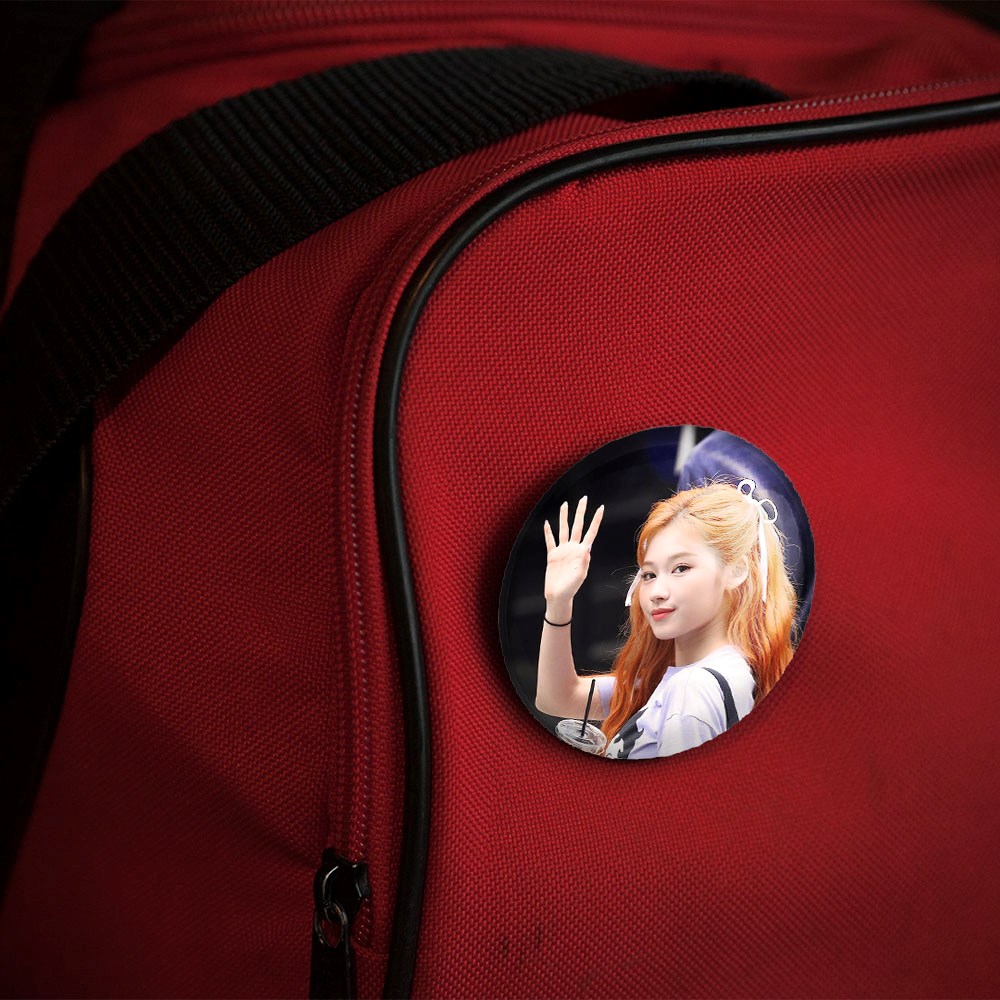 پیکسل 44 میلی متری سانا گروه توایس TWICE خندالو با روکش سلفون حرارتی مات مخملی ضدخش و قطعه پشتی رنگی تولید شده است.پلاستیکی پشت پیکسل با سوزن یک تکه ثابت و بدون لغزش و جا به جایی، ایستایی بسیار بهتری نسبت به پشتی فلزی پیکسل دارند که این مهم در تولید این محصول نیز رعایت شده است.