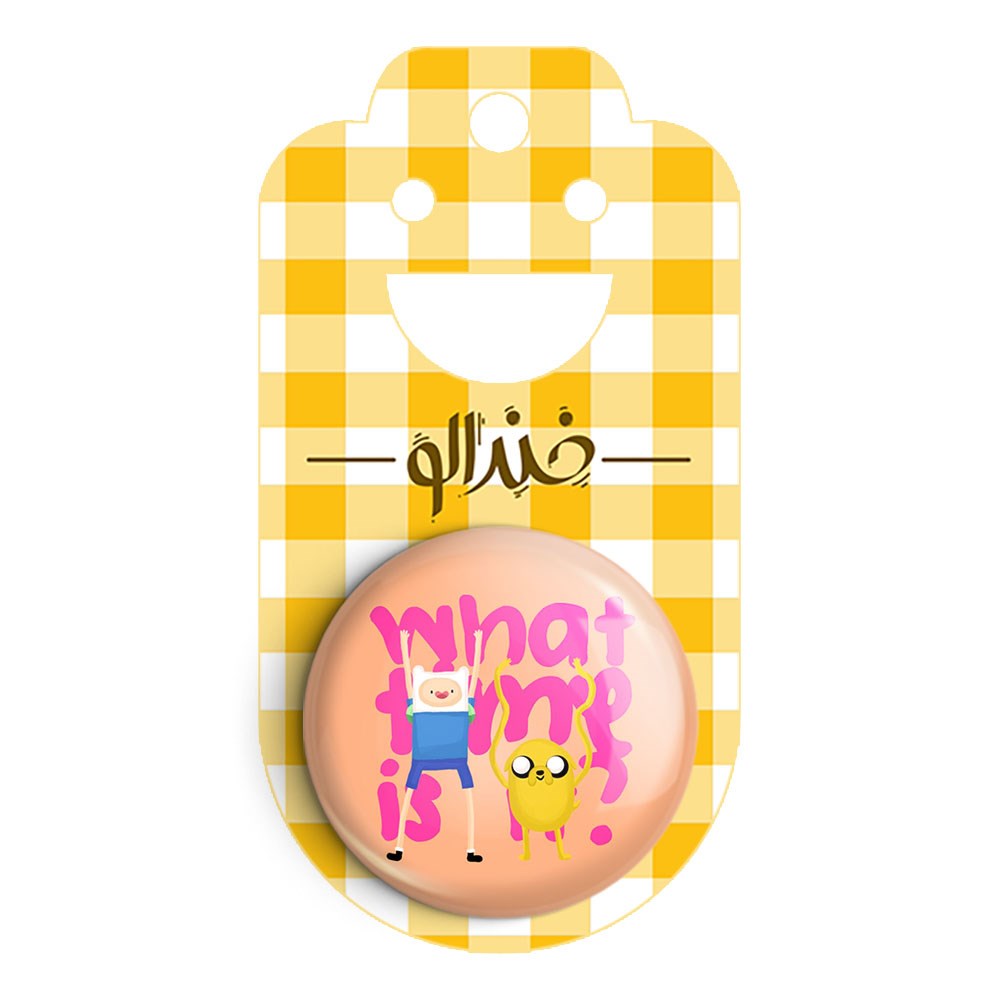 پیکسل 44 میلی متری جیک و فین وقت ماجراجویی Adventure Time خندالو با روکش سلفون حرارتی مات مخملی ضدخش و قطعه پشتی رنگی تولید شده است.پلاستیکی پشت پیکسل با سوزن یک تکه ثابت و بدون لغزش و جا به جایی، ایستایی بسیار بهتری نسبت به پشتی فلزی پیکسل دارند که این مهم در تولید این محصول نیز رعایت شده است.