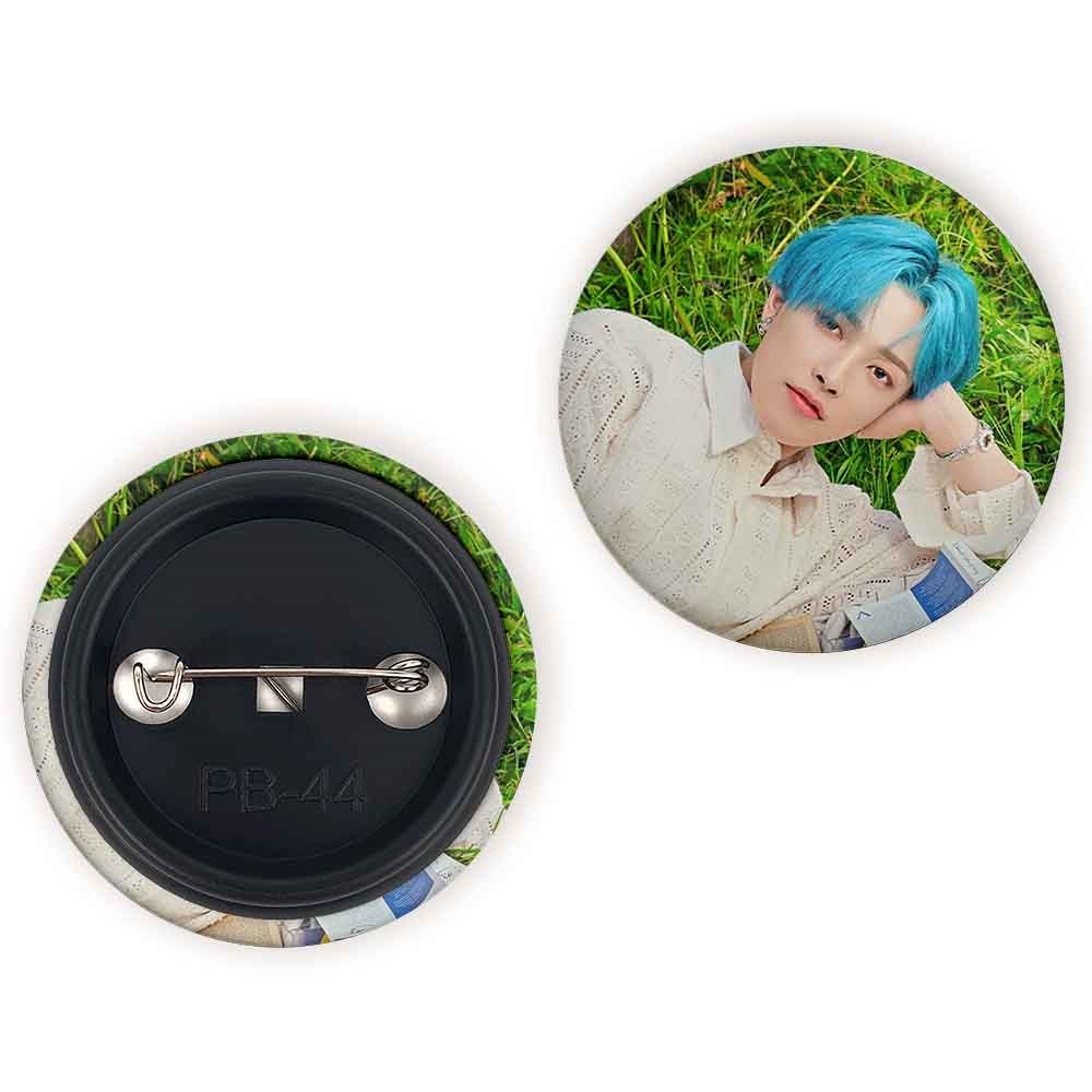 پیکسل 44 میلی متری هونگ جونگ گروه ایتیز ATEEZ خندالو با روکش سلفون حرارتی مات مخملی ضدخش و قطعه پشتی رنگی تولید شده است.پلاستیکی پشت پیکسل با سوزن یک تکه ثابت و بدون لغزش و جا به جایی، ایستایی بسیار بهتری نسبت به پشتی فلزی پیکسل دارند که این مهم در تولید این محصول نیز رعایت شده است.