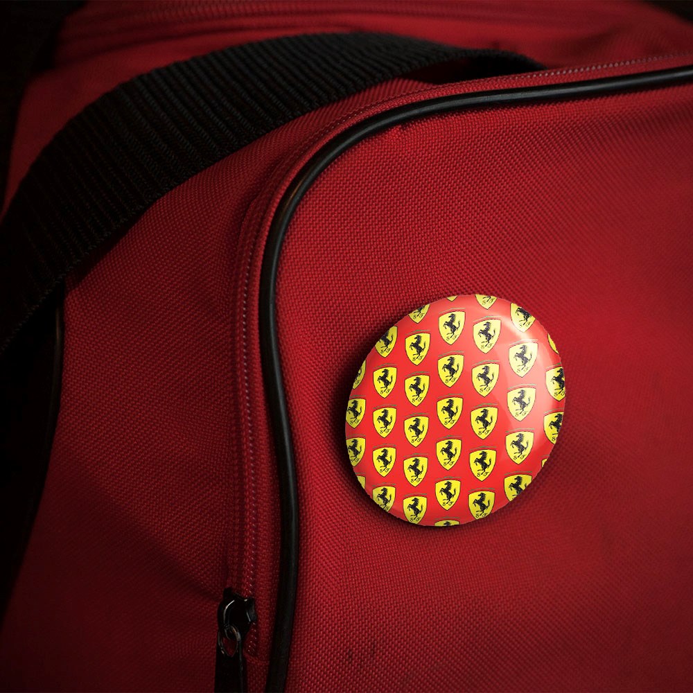 پیکسل 44 میلی متری فراری Ferrari خندالو با روکش سلفون حرارتی مات مخملی ضدخش و قطعه پشتی رنگی تولید شده است.پلاستیکی پشت پیکسل با سوزن یک تکه ثابت و بدون لغزش و جا به جایی، ایستایی بسیار بهتری نسبت به پشتی فلزی پیکسل دارند که این مهم در تولید این محصول نیز رعایت شده است.