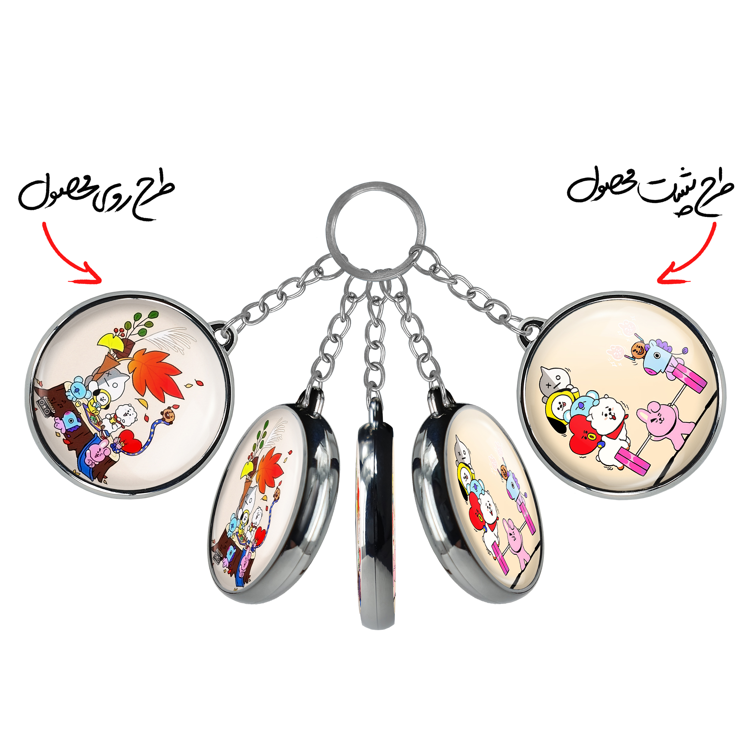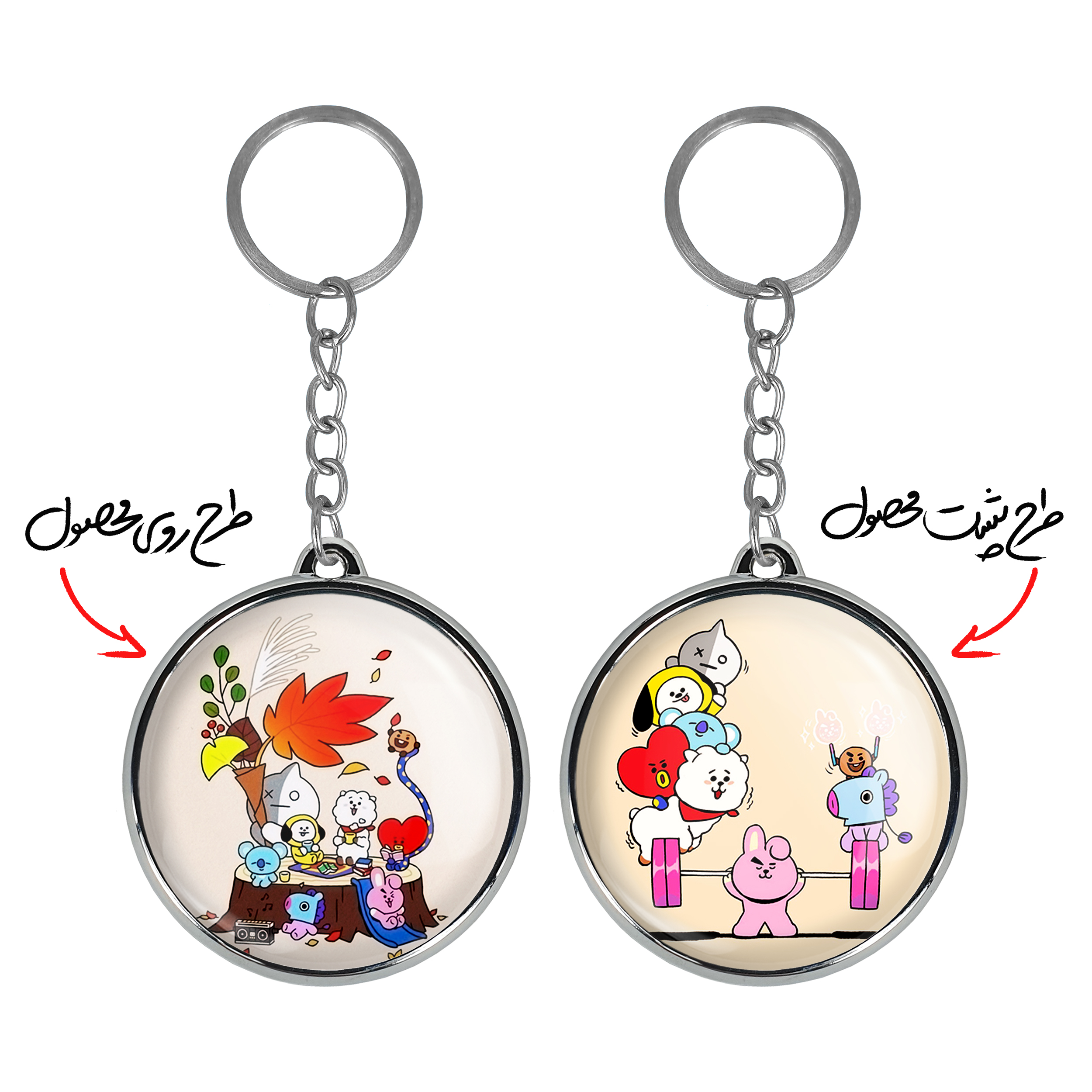 جاکلیدی دوطرفه BT21 خندالو محصولی کاربردی و جدید است که در هر دو سمت محصول، تصویری متفاوت اما از یک موضوع چاپ شده و تفاوت اصلی آن با جاکلیدی های یک طرفه در همین است که هر دو سمت پشت و روی جاکلیدی، طرحی دیدنی و جذاب دارد.