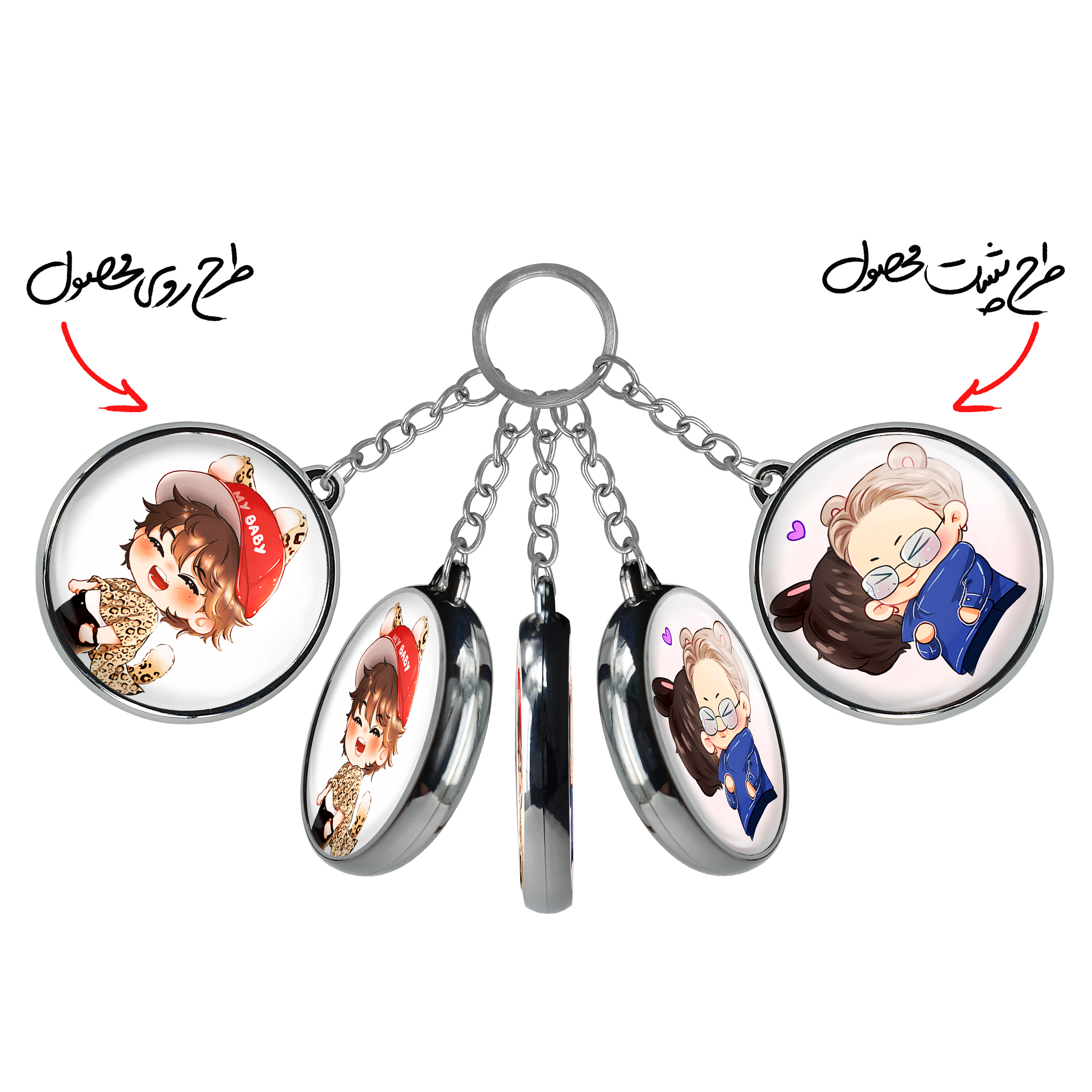 جاکلیدی دوطرفه BT21 خندالو محصولی کاربردی و جدید است که در هر دو سمت محصول، تصویری متفاوت اما از یک موضوع چاپ شده و تفاوت اصلی آن با جاکلیدی های یک طرفه در همین است که هر دو سمت پشت و روی جاکلیدی، طرحی دیدنی و جذاب دارد.