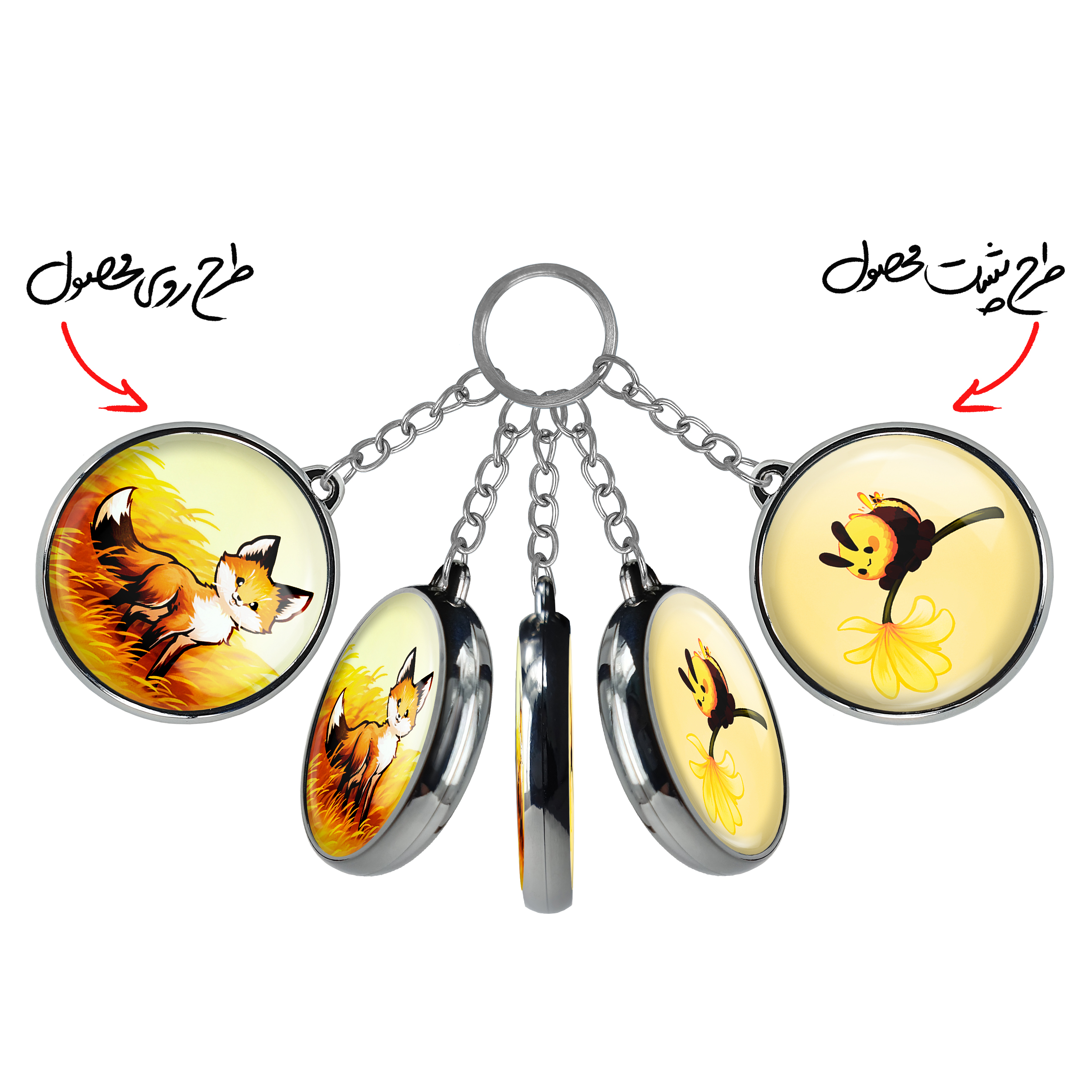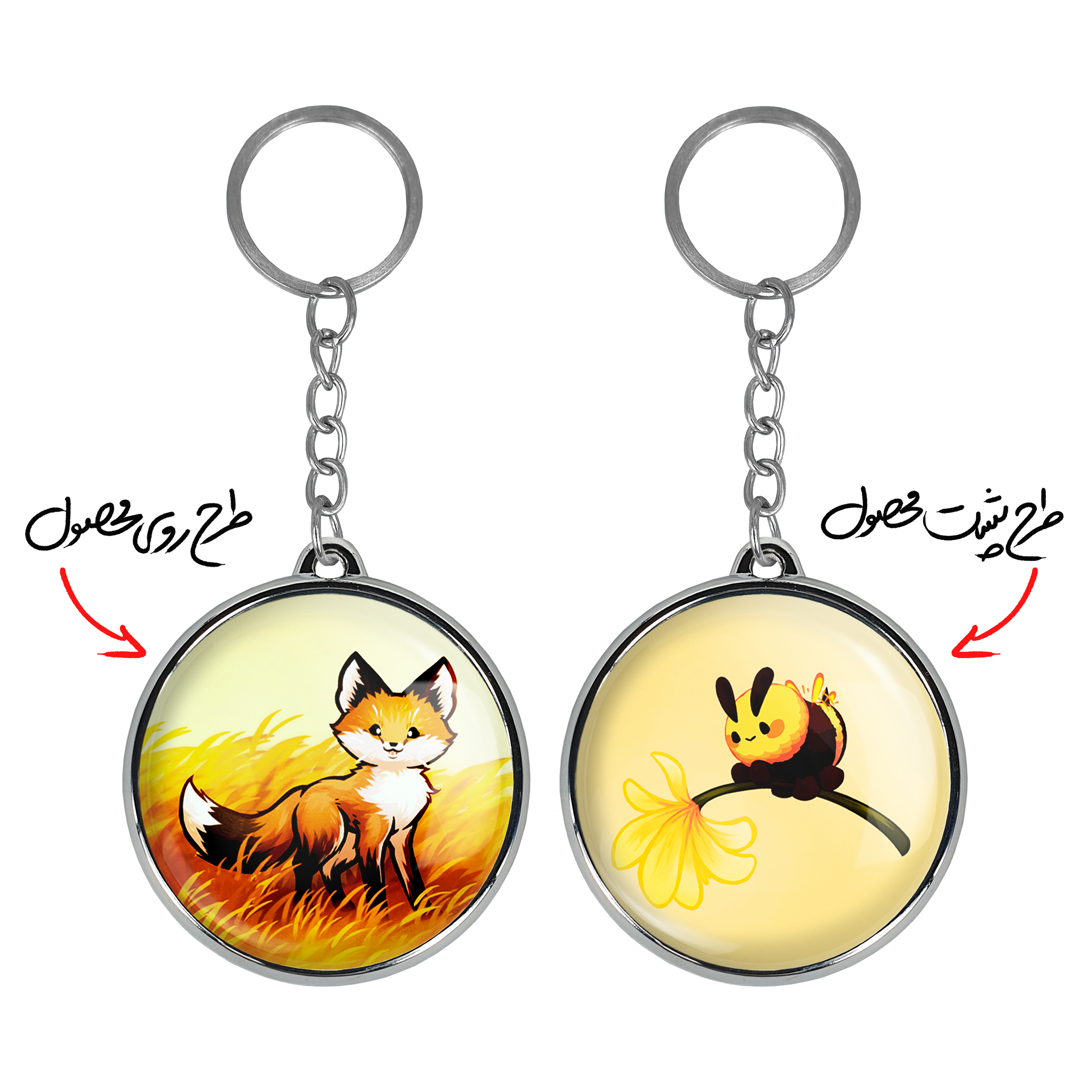 جاکلیدی دوطرفه روباه حیوانات بامزه خندالو محصولی کاربردی و جدید است که در هر دو سمت محصول، تصویری متفاوت اما از یک موضوع چاپ شده و تفاوت اصلی آن با جاکلیدی های یک طرفه در همین است که هر دو سمت پشت و روی جاکلیدی، طرحی دیدنی و جذاب دارد. همچنین رینگ بکار برده شده برای دور طرح ها آبکاری کروم درجه یک و رنگ ثابت است و برخلاف سایر محصولات مشابه، از رنگ های متفرقه و یا سفید استفاده نشده، که این مهم، زیبایی محصول نهایی را چند برابر کرده است. جاکلیدی های دوطرفه روباه حیوانات بامزه با استفاده از روکش سلفون براق ضدخش تولید شده که خاصیت ضدخش بودن آن عمر مفید استفاده از جاکلیدی ها را افزایش میدهد. چاپ جاکلیدی ها با دستگاه های استاندارد و با بهترین سطح کیفیت صورت گرفته و طرح با شفافیتی مثال زدنی و با سلفون چسبی تولید شده است که باعث شده محصول نهایی بدون شکست نور دیده شود. همچنین بسته بندی جذاب و مینیمال جاکلیدی دوطرفه روباه حیوانات بامزه ، آنها را محصولی مناسب هدیه کرده است. زنجیر و حلقه بکار برده شده در جاکلیدی خندالو از نوع حلقه ضخیم و محکم بوده و حین استفاده آسیب نمی بیند.