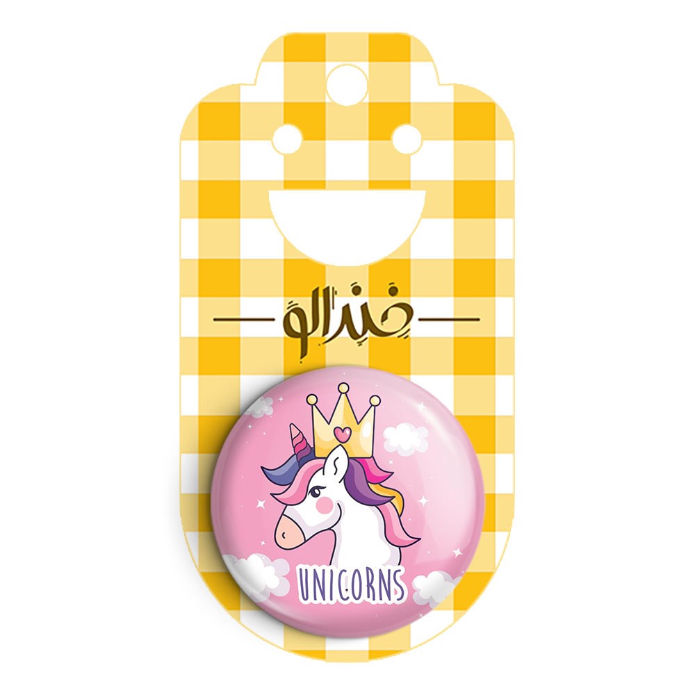 پیکسل 44 میلی متری اسب تک شاخ خندالو با روکش سلفون حرارتی مات مخملی ضدخش و قطعه پشتی رنگی تولید شده است.پلاستیکی پشت پیکسل با سوزن یک تکه ثابت و بدون لغزش و جا به جایی، ایستایی بسیار بهتری نسبت به پشتی فلزی پیکسل دارند که این مهم در تولید این محصول نیز رعایت شده است.