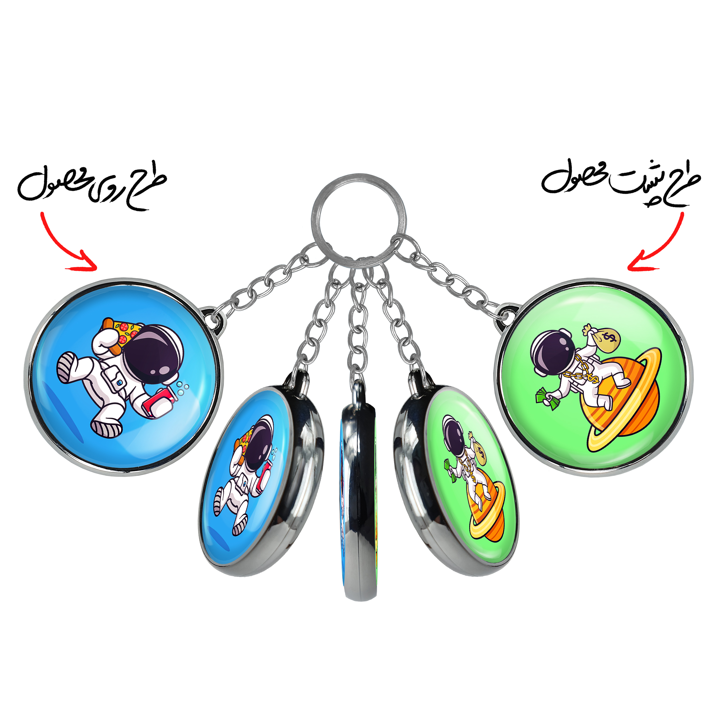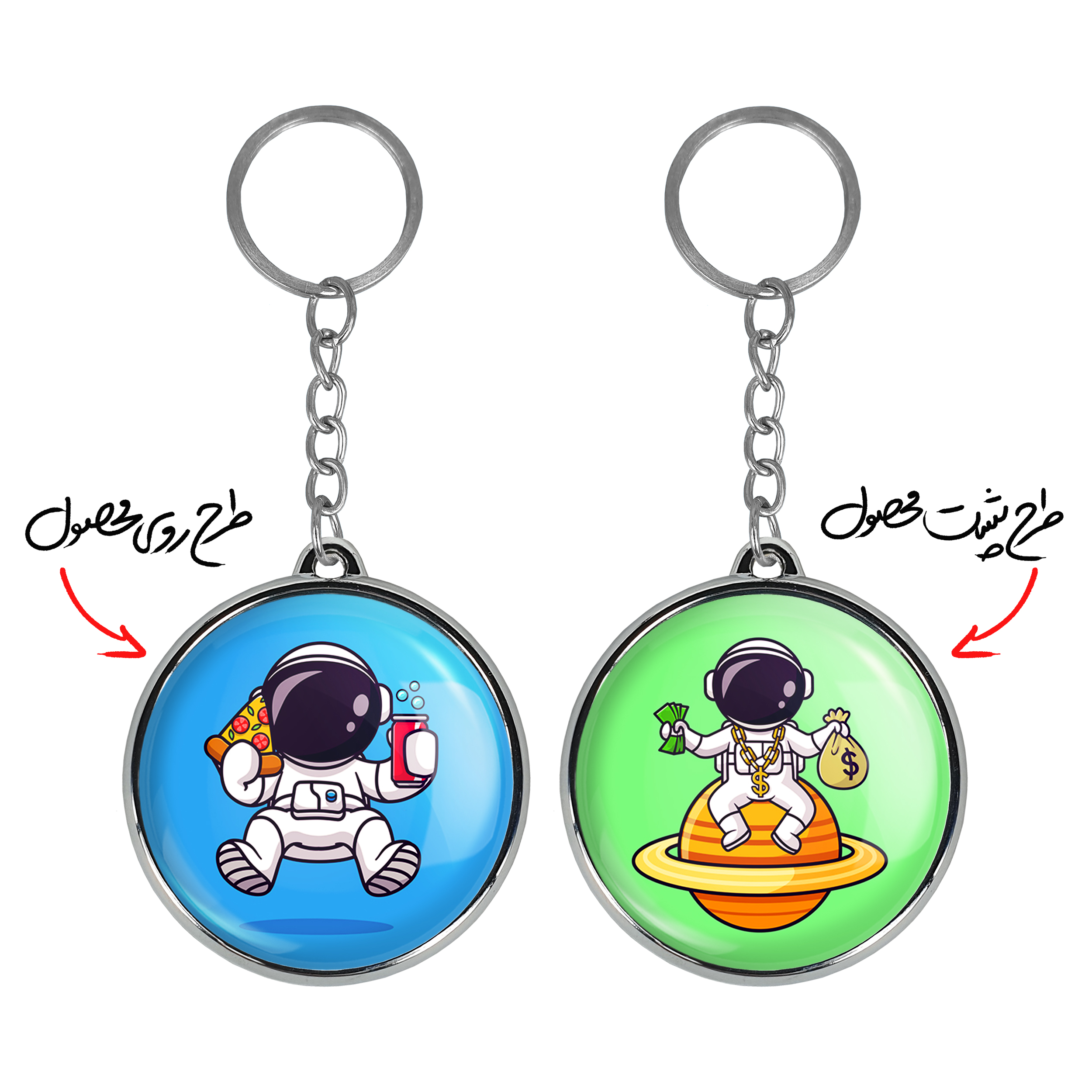 جاکلیدی دوطرفه فضانوردخندالو محصولی کاربردی و جدید است که در هر دو سمت محصول، تصویری متفاوت اما از یک موضوع چاپ شده و تفاوت اصلی آن با جاکلیدی های یک طرفه در همین است که هر دو سمت پشت و روی جاکلیدی، طرحی دیدنی و جذاب دارد.
