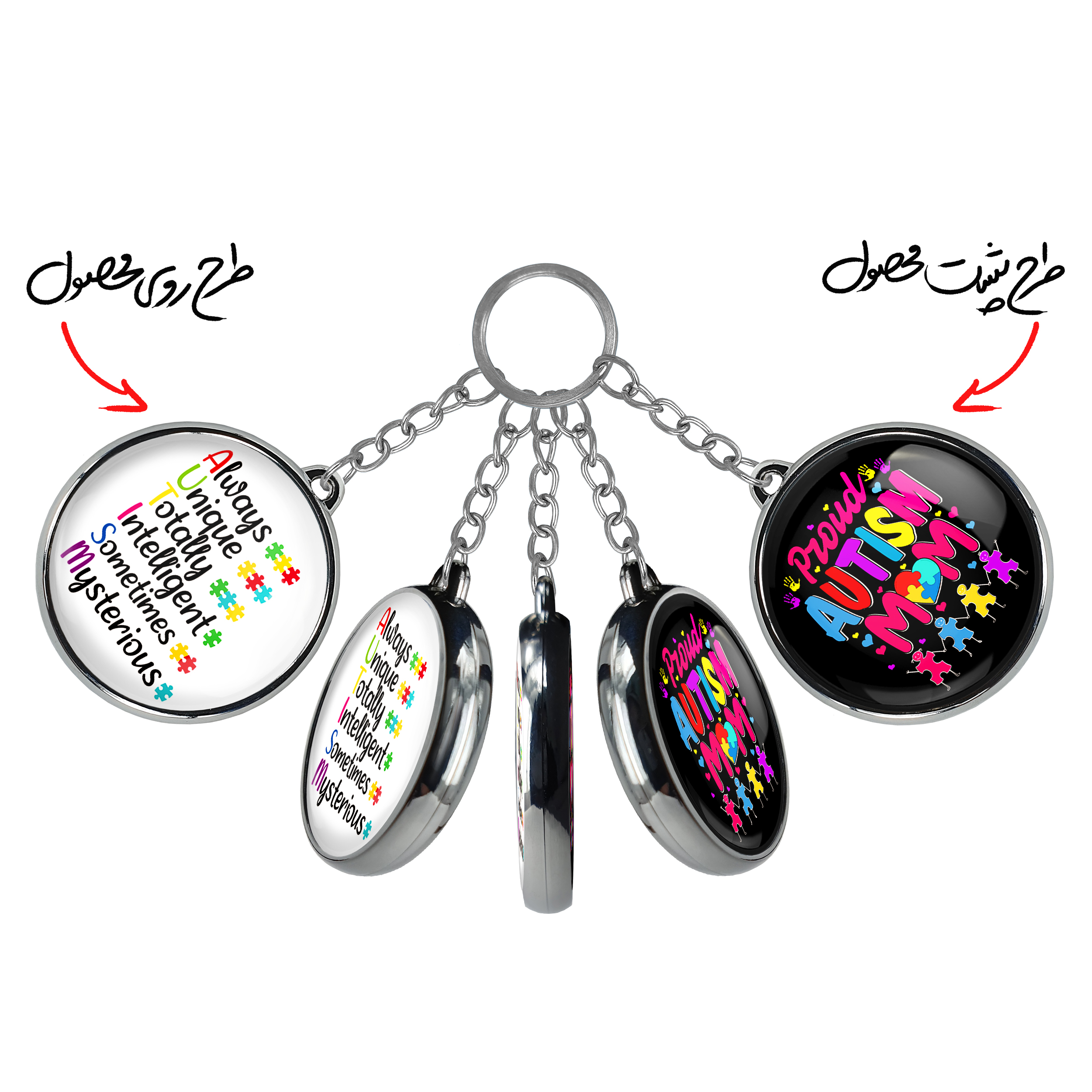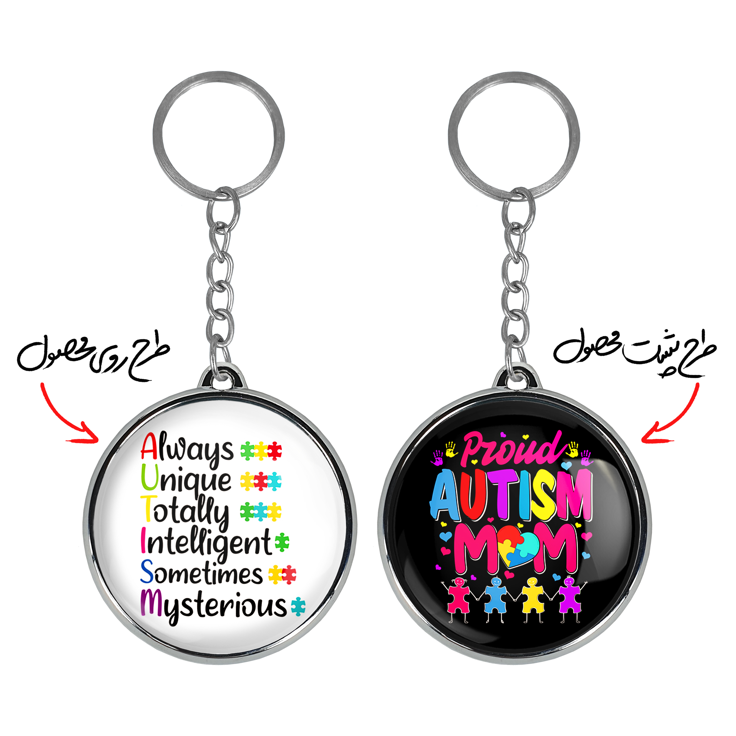 جاکلیدی دوطرفه اتیسم Autismخندالو محصولی کاربردی و جدید است که در هر دو سمت محصول، تصویری متفاوت اما از یک موضوع چاپ شده و تفاوت اصلی آن با جاکلیدی های یک طرفه در همین است که هر دو سمت پشت و روی جاکلیدی، طرحی دیدنی و جذاب دارد.