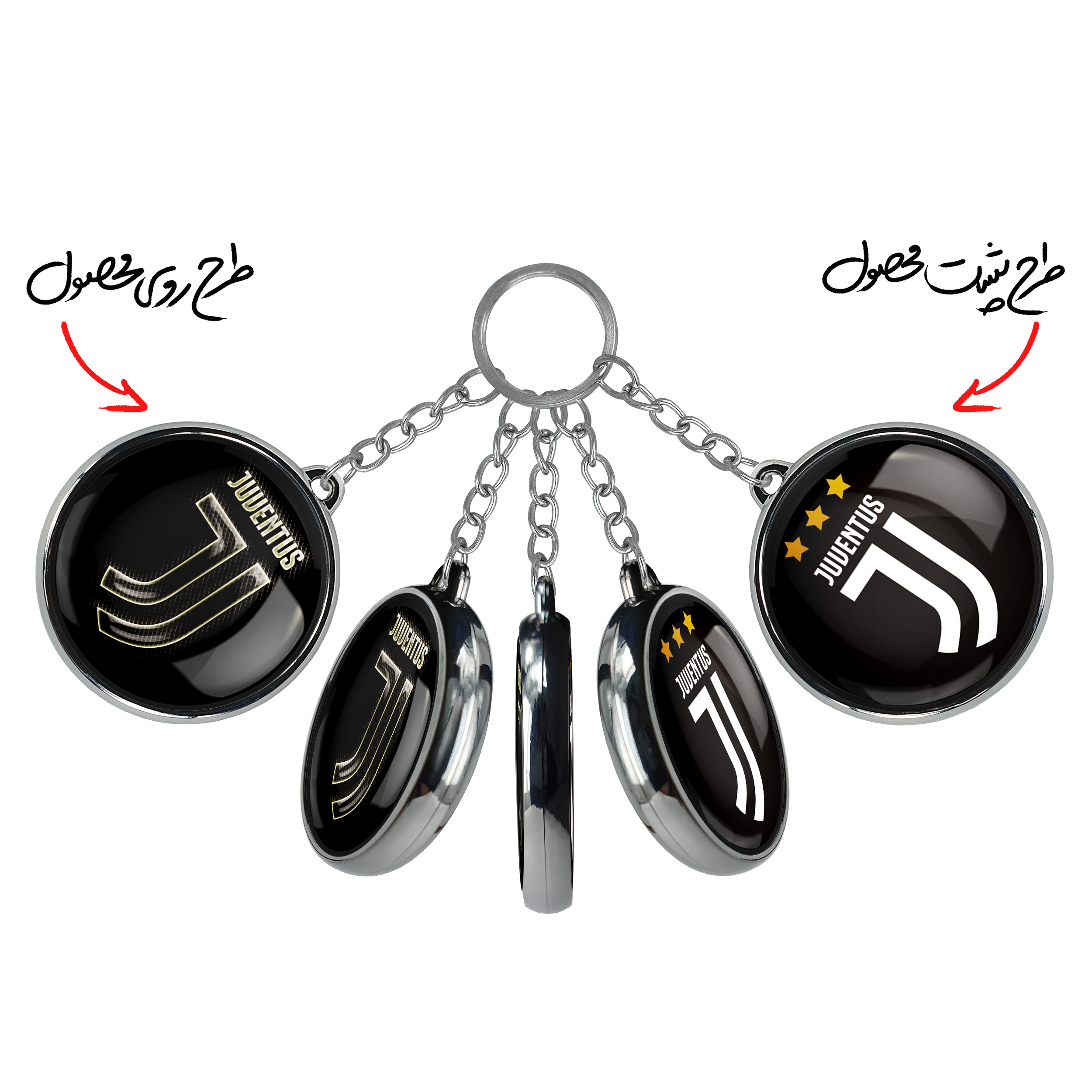 جاکلیدی دوطرفه باشگاه یوونتوسخندالو محصولی کاربردی و جدید است که در هر دو سمت محصول، تصویری متفاوت اما از یک موضوع چاپ شده و تفاوت اصلی آن با جاکلیدی های یک طرفه در همین است که هر دو سمت پشت و روی جاکلیدی، طرحی دیدنی و جذاب دارد.