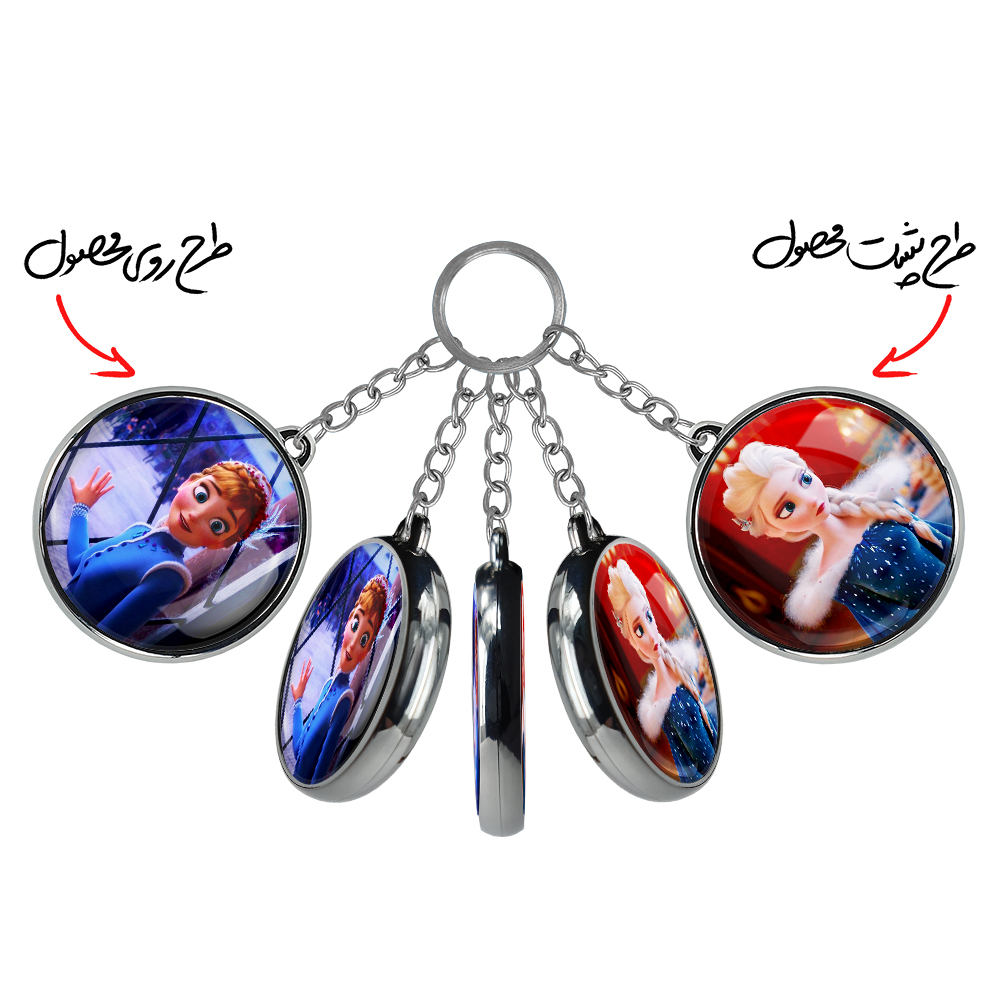 جاکلیدی دوطرفه السا و آنا انیمیشن فروزن Frozenخندالو محصولی کاربردی و جدید است که در هر دو سمت محصول، تصویری متفاوت اما از یک موضوع چاپ شده و تفاوت اصلی آن با جاکلیدی های یک طرفه در همین است که هر دو سمت پشت و روی جاکلیدی، طرحی دیدنی و جذاب دارد. همچنین رینگ بکار برده شده برای دور طرح ها آبکاری کروم درجه یک و رنگ ثابت است و برخلاف سایر محصولات مشابه، از رنگ های متفرقه و یا سفید استفاده نشده، که این مهم، زیبایی محصول نهایی را چند برابر کرده است. جاکلیدی های دوطرفه السا و آنا انیمیشن فروزن Frozenبا استفاده از روکش سلفون براق ضدخش تولید شده که خاصیت ضدخش بودن آن عمر مفید استفاده از جاکلیدی ها را افزایش میدهد. چاپ جاکلیدی ها با دستگاه های استاندارد و با بهترین سطح کیفیت صورت گرفته و طرح با شفافیتی مثال زدنی و با سلفون چسبی تولید شده است که باعث شده محصول نهایی بدون شکست نور دیده شود. همچنین بسته بندی جذاب و مینیمال جاکلیدی دوطرفه السا و آنا انیمیشن فروزن Frozen، آنها را محصولی مناسب هدیه کرده است. زنجیر و حلقه بکار برده شده در جاکلیدی خندالو از نوع حلقه ضخیم و محکم بوده و حین استفاده آسیب نمی بیند.