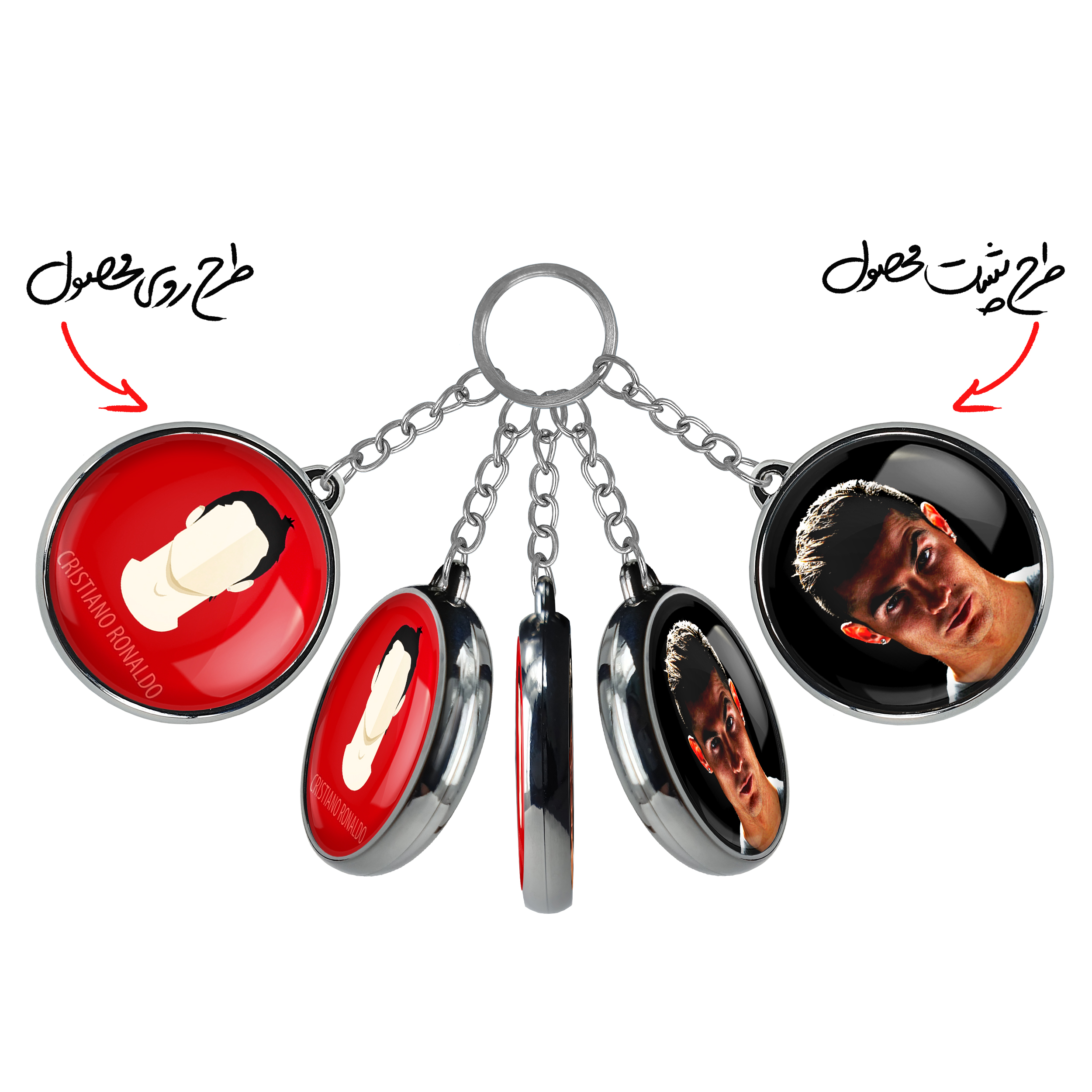 جاکلیدی دوطرفه کریستیانو رونالدو خندالو محصولی کاربردی و جدید است که در هر دو سمت محصول، تصویری متفاوت اما از یک موضوع چاپ شده و تفاوت اصلی آن با جاکلیدی های یک طرفه در همین است که هر دو سمت پشت و روی جاکلیدی، طرحی دیدنی و جذاب دارد.
