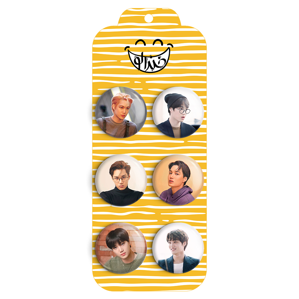 مجموعه 6 عددی پیکسل خندالو طرح EXO گروه Kai با روکش سلفون حرارتی براق ضدخش و قطعه پشتی رنگی تولید شده است. قطعات پشتی از میان 6 رنگ سفید، مشکی، صورتی، زرد، آبی و قرمز که با توجه به نوع و رنگبندی طرح روی پیکسل انتخاب شده اند تولید می شود و در هر بسته بندی مطابق عکس محصول می باشد.
