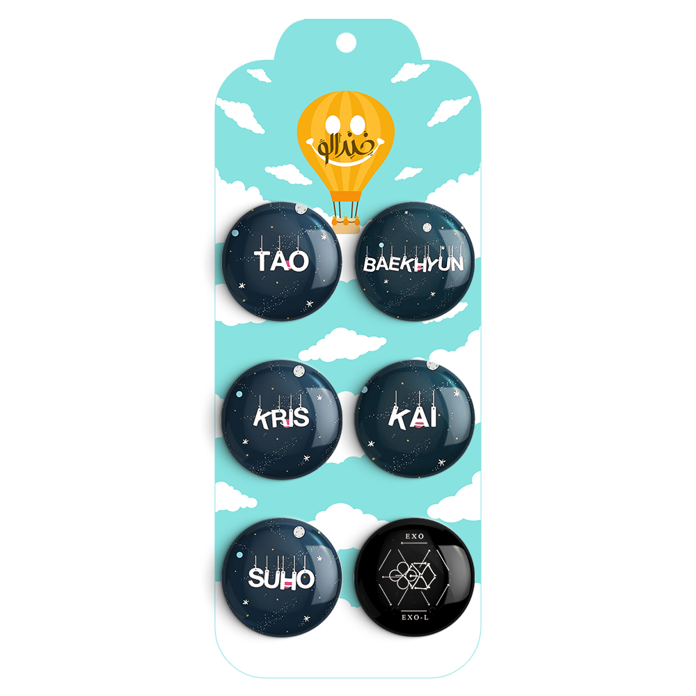 مجموعه 6 عددی پیکسل خندالو طرح گروه EXO با روکش سلفون حرارتی براق ضدخش و قطعه پشتی رنگی تولید شده است. قطعات پشتی از میان 6 رنگ سفید، مشکی، صورتی، زرد، آبی و قرمز که با توجه به نوع و رنگبندی طرح روی پیکسل انتخاب شده اند تولید می شود و در هر بسته بندی مطابق عکس محصول می باشد.