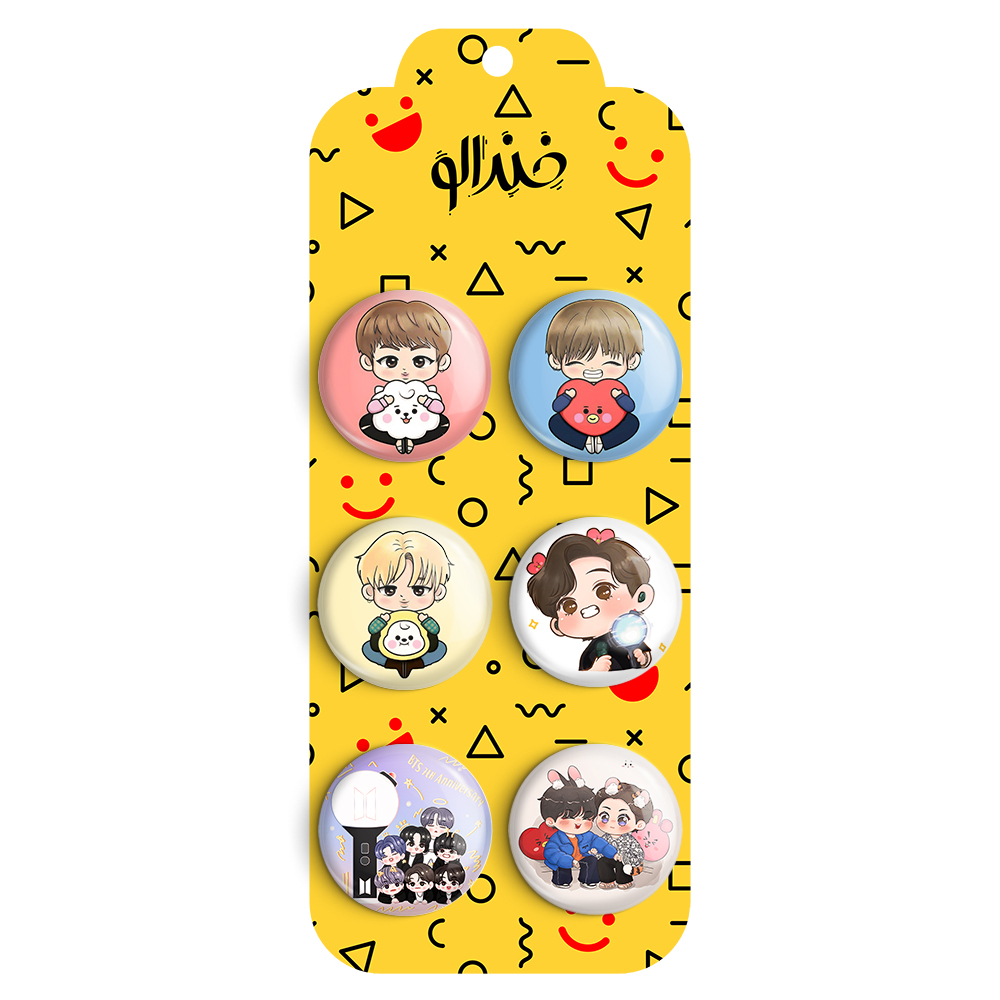 مجموعه 6 عددی پیکسل خندالو طرح BT21 با روکش سلفون حرارتی براق ضدخش و قطعه پشتی رنگی تولید شده است. قطعات پشتی از میان 6 رنگ سفید، مشکی، صورتی، زرد، آبی و قرمز که با توجه به نوع و رنگبندی طرح روی پیکسل انتخاب شده اند تولید می شود و در هر بسته بندی مطابق عکس محصول می باشد.