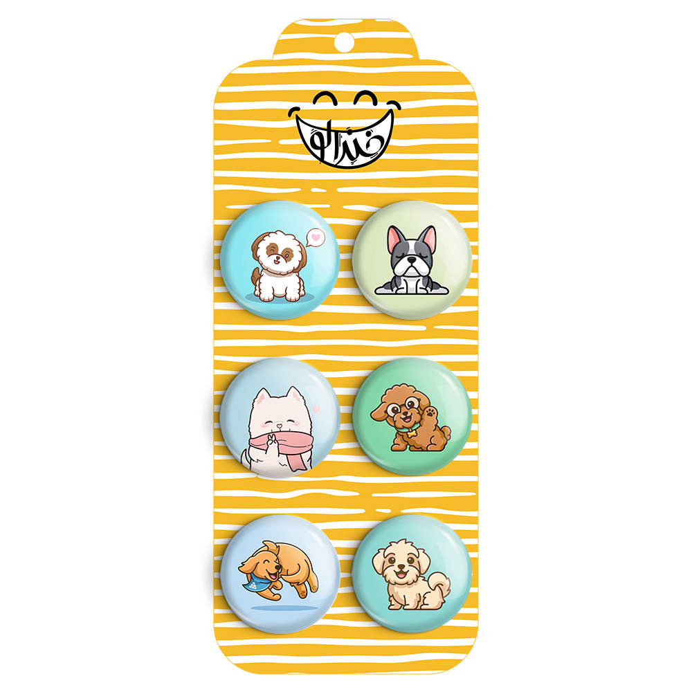 مجموعه 6 عددی پیکسل خندالو طرح پت شاپ سگ با روکش سلفون حرارتی براق ضدخش و قطعه پشتی رنگی تولید شده است. قطعات پشتی از میان 6 رنگ سفید، مشکی، صورتی، زرد، آبی و قرمز که با توجه به نوع و رنگبندی طرح روی پیکسل انتخاب شده اند تولید می شود و در هر بسته بندی مطابق عکس محصول می باشد.