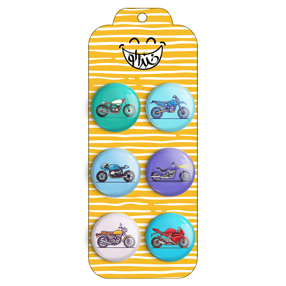 مجموعه 6 عددی پیکسل خندالو طرح موتور با روکش سلفون حرارتی براق ضدخش و قطعه پشتی رنگی تولید شده است. قطعات پشتی از میان 6 رنگ سفید، مشکی، صورتی، زرد، آبی و قرمز که با توجه به نوع و رنگبندی طرح روی پیکسل انتخاب شده اند تولید می شود و در هر بسته بندی مطابق عکس محصول می باشد. قطعات پلاستیکی پشت پیکسل با سوزن یک تکه ثابت و بدون لغزش و جا به جایی، ایستایی بسیار بهتری نسبت به پشتی فلزی پیکسل دارند که این مهم در تولید این محصول نیز رعایت شده است. چاپ پیکسل نیز با دستگاه های استاندارد و با بهترین سطح کیفی صورت گرفته و طرح با شفافیتی مثال زدنی و با سلفونی بدون شکست نور بر روی پیکسل نقش بسته است. همچنین بسته بندی جذاب و مینیمال پیکسل ها، آنها را مناسب هدیه کرده است..