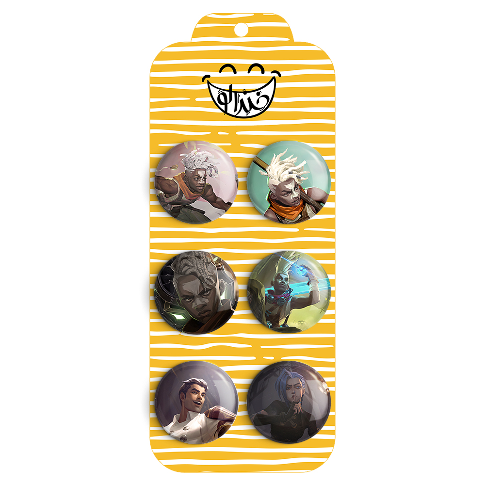 مجموعه 6 عددی پیکسل خندالو طرح بازی آرکین (Arcane) با روکش سلفون حرارتی براق ضدخش و قطعه پشتی رنگی تولید شده است. قطعات پشتی از میان 6 رنگ سفید، مشکی، صورتی، زرد، آبی و قرمز که با توجه به نوع و رنگبندی طرح روی پیکسل انتخاب شده اند تولید می شود و در هر بسته بندی مطابق عکس محصول می باشد. قطعات پلاستیکی پشت پیکسل با سوزن یک تکه ثابت و بدون لغزش و جا به جایی، ایستایی بسیار بهتری نسبت به پشتی فلزی پیکسل دارند که این مهم در تولید این محصول نیز رعایت شده است. چاپ پیکسل نیز با دستگاه های استاندارد و با بهترین سطح کیفی صورت گرفته و طرح با شفافیتی مثال زدنی و با سلفونی بدون شکست نور بر روی پیکسل نقش بسته است. همچنین بسته بندی جذاب و مینیمال پیکسل ها، آنها را مناسب هدیه کرده است..